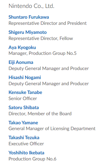 Here’s a look at various positions for some of Nintendo’s most important employees: