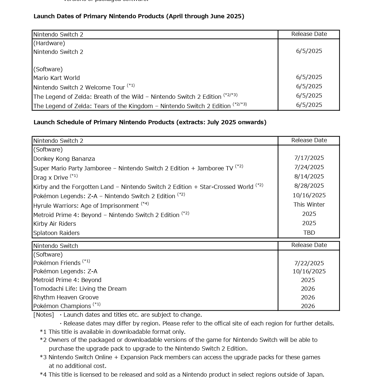 Overall there aren’t too many major surprises. Drag x Drive has its proper release date on the calendar, but we’re waiting for launch timing on Metroid Prime 4, Kirby Air Riders, Hyrule Warriors: Age of Imprisonment, and Splatoon Raiders.