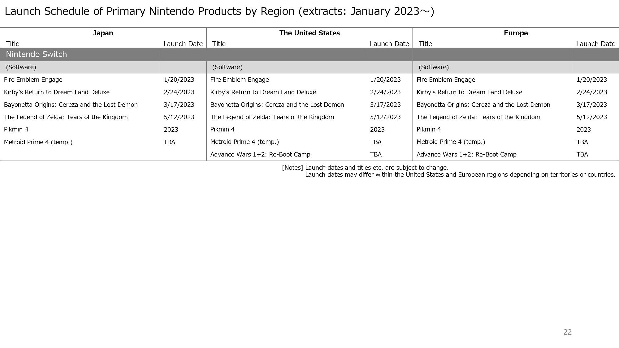 The document doesn’t have too many surprises this time around. Zelda: Tears of the Kingdom remains on track for May, while Metroid Prime 4 and Advance Wars 1+2: Re-Boot Camp are still without release windows.