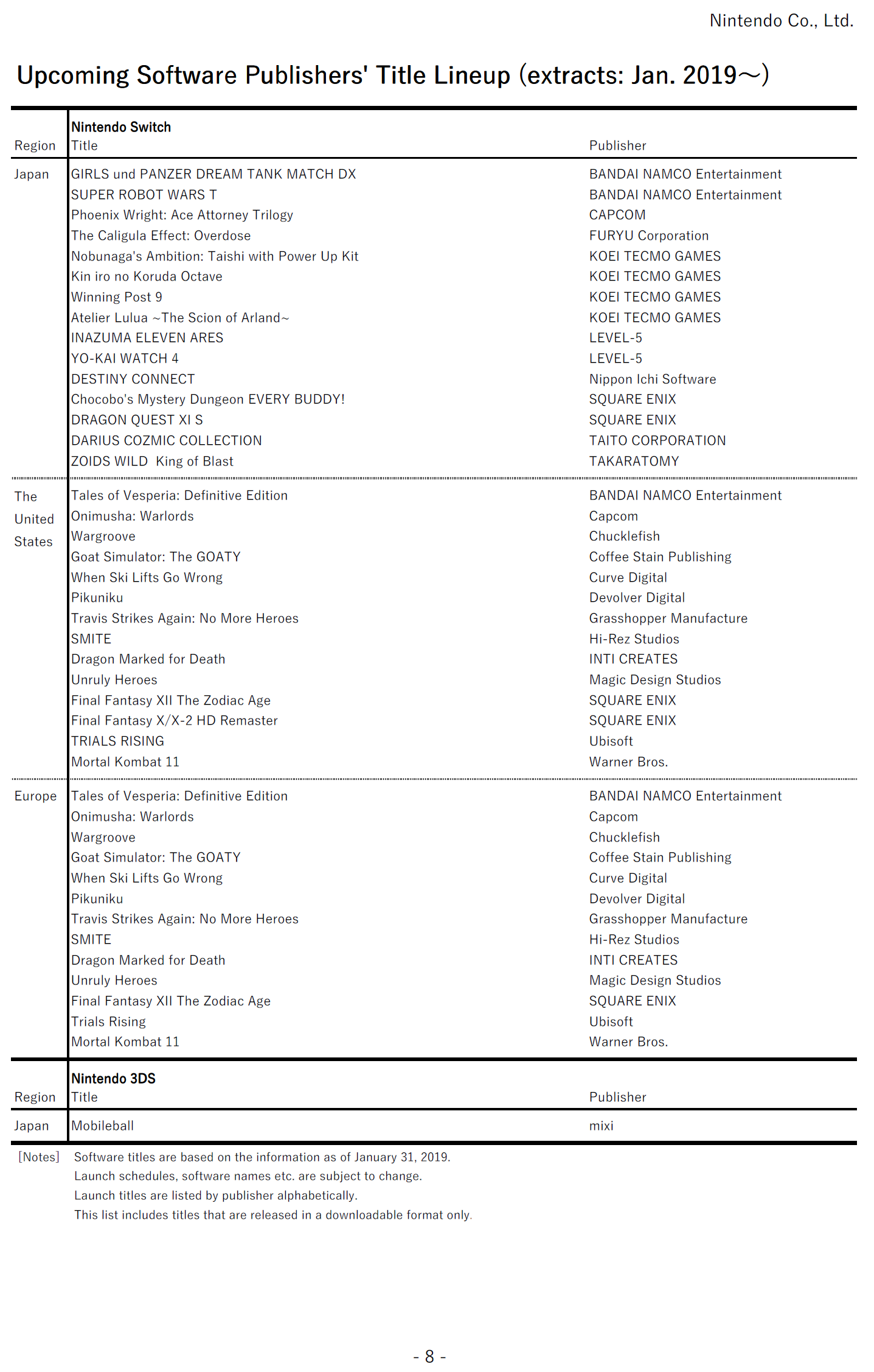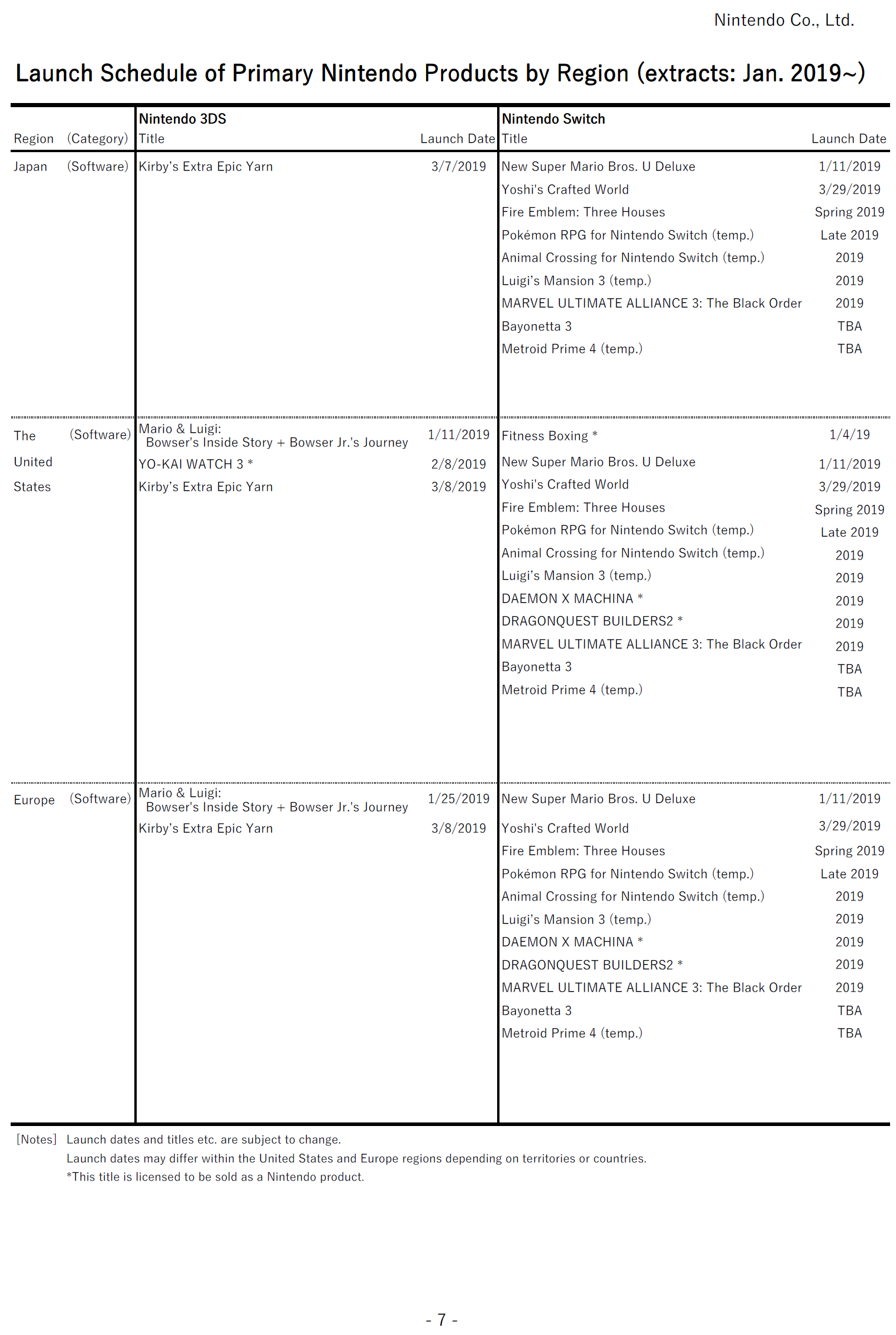 Nintendo’s latest financial results are in, and included with the various documents is the upcoming release schedule for Switch and 3DS. Aside from a look at what’s to come from a first-party perspective, it also provides an overview of some planned third-party titles. We’ve attached the latest schedule below.
