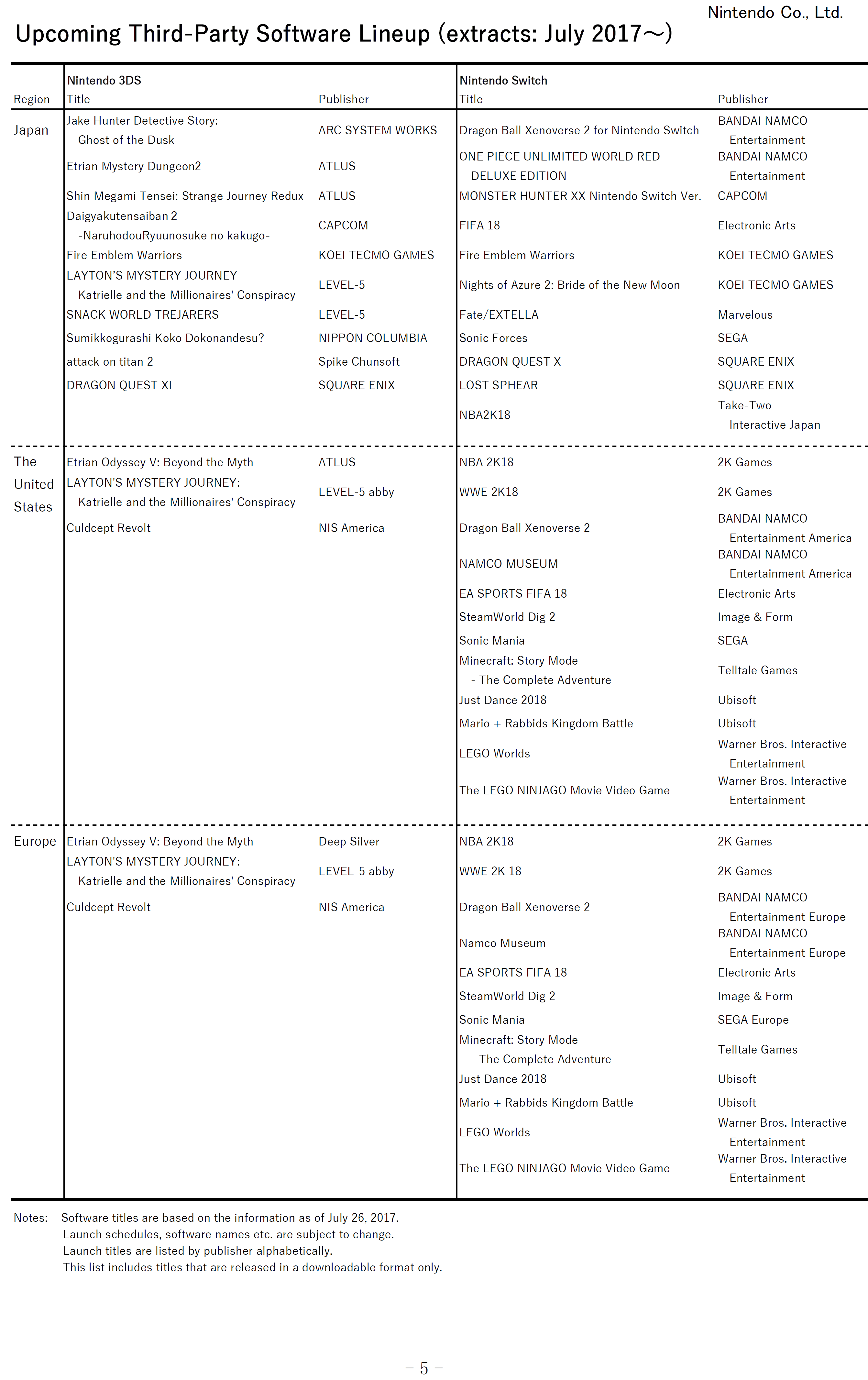 Nintendo release schedule – July 2017