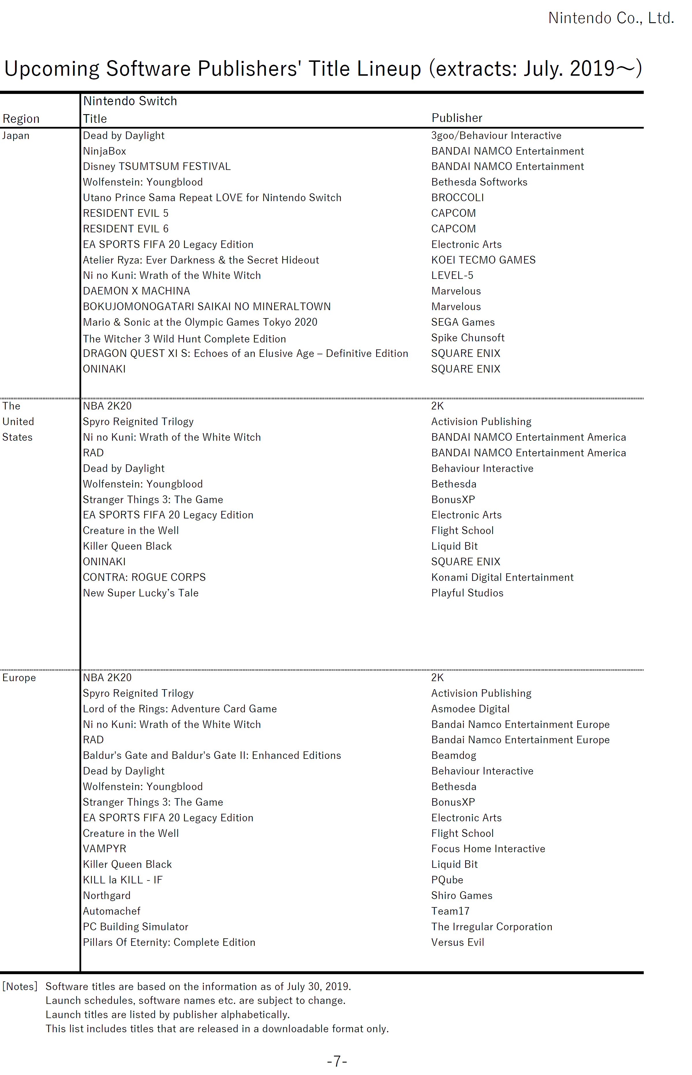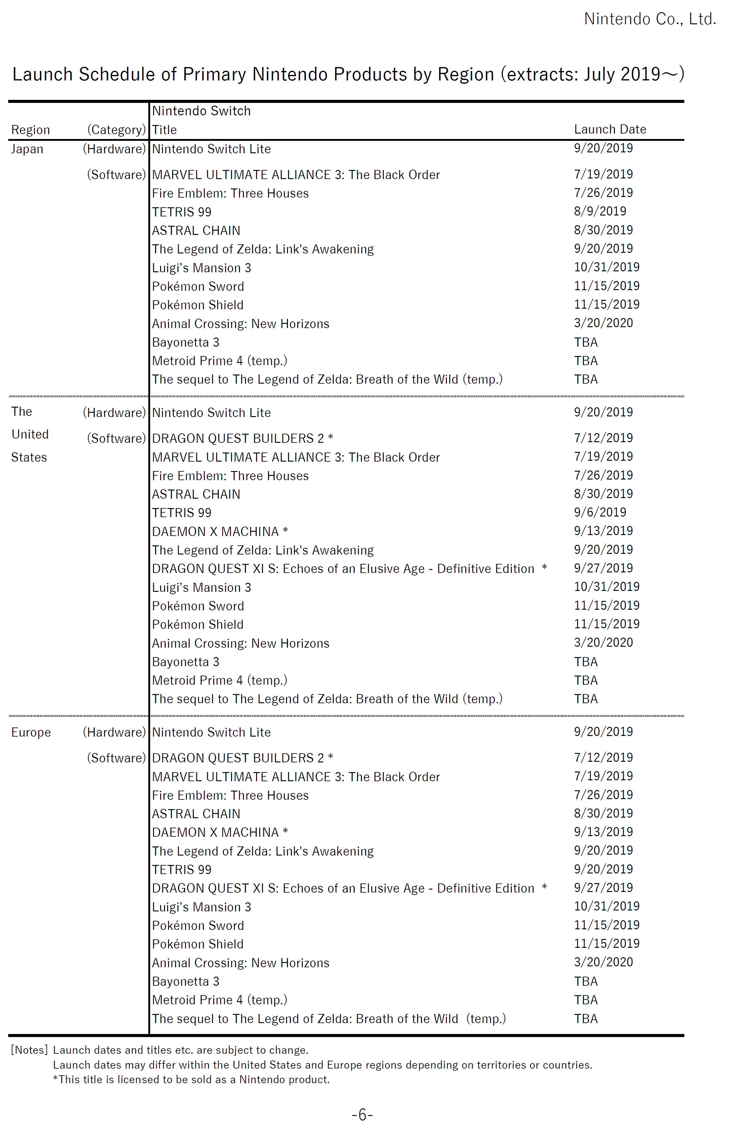 Nintendo’s latest financial results are in, and included with the various documents is the upcoming release schedule for Switch. Aside from a look at what’s to come from a first-party perspective, it also provides an overview of some planned third-party titles. We’ve attached the latest schedule below.