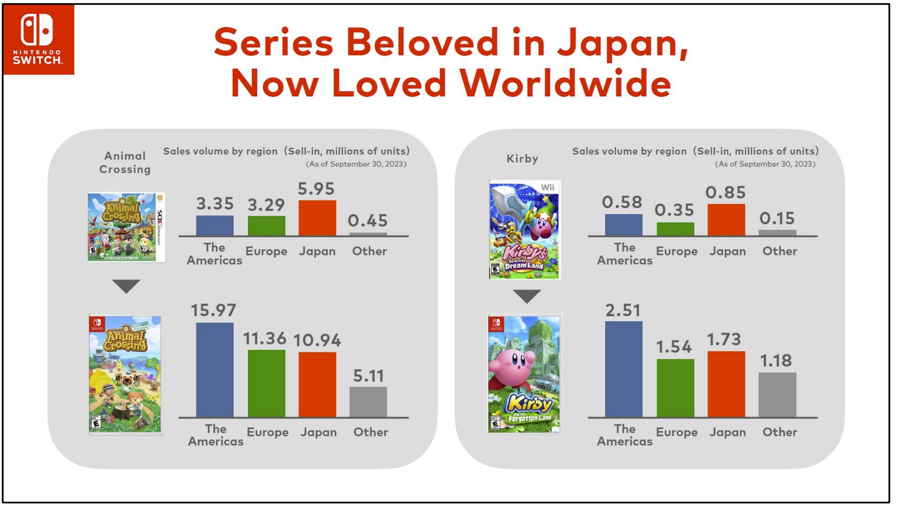 Before Nintendo Switch, sales of series like Animal Crossing and Kirby were primarily driven by the Japanese market. But with Nintendo Switch titles, we’ve greatly increased sales in other regions and are seeing worldwide interest.