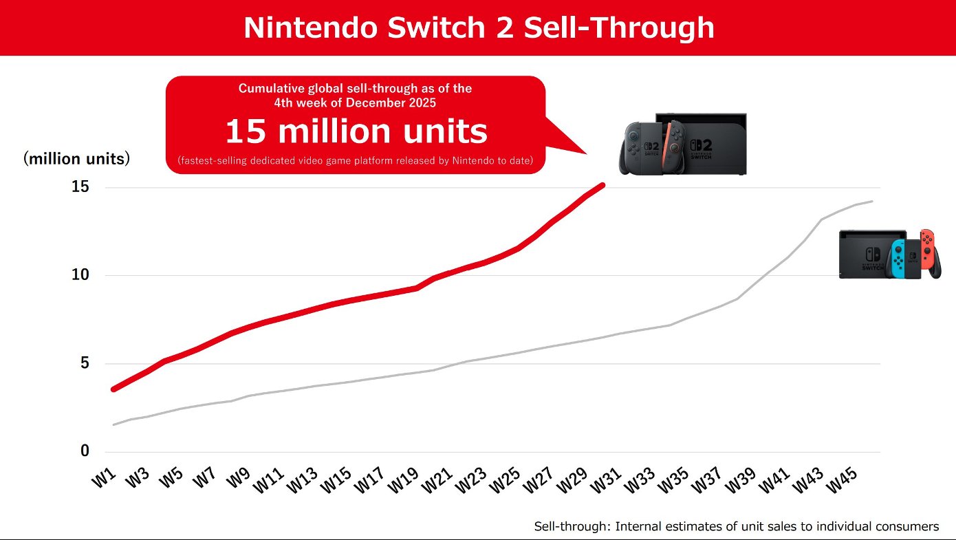 Also confirmed today is that Switch 2 is the fastest-selling Nintendo system ever based on sell-through. This is pictured in the graphic below.