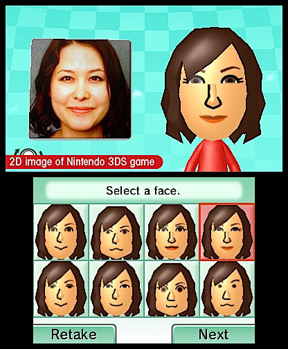 Similar to the Wii, the 3DS has a Mii-creation feature, which is the ability to make a little character of your likeness to be used in games/activities all across the console. While it remains essentially the same as the Wii version, there is one distinct difference in that you can take a picture of your face and then have the system make a Mii for you based off of that image. It’s a very cool little piece of tech that works relatively well, despite the fact that you still need to choose your own gender, hair color, hairstyle, and eye color.