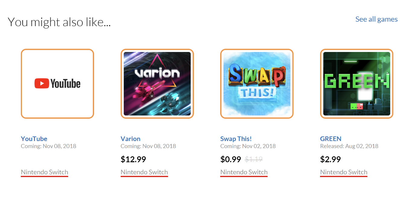 On certain pages of Nintendo’s website, if you scroll down to the “You might also like…” section, one of the suggestions that appears is none other than YouTube. Attempting to access the page goes nowhere, but we do see a November 8 release date.
