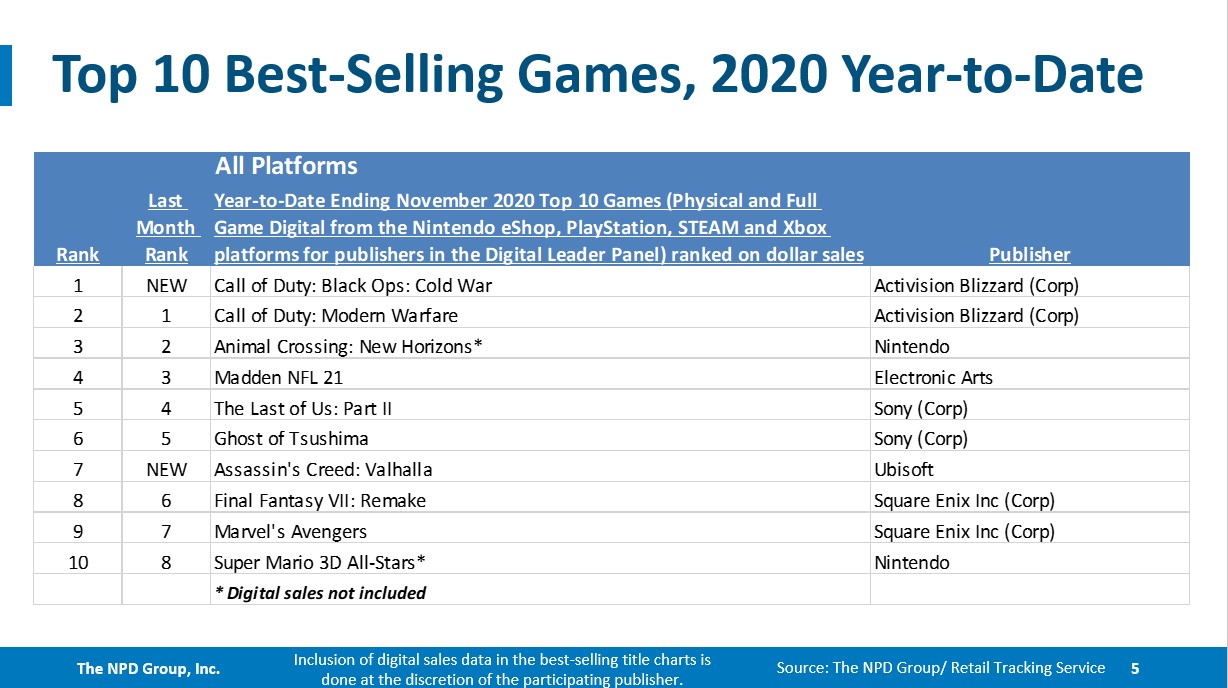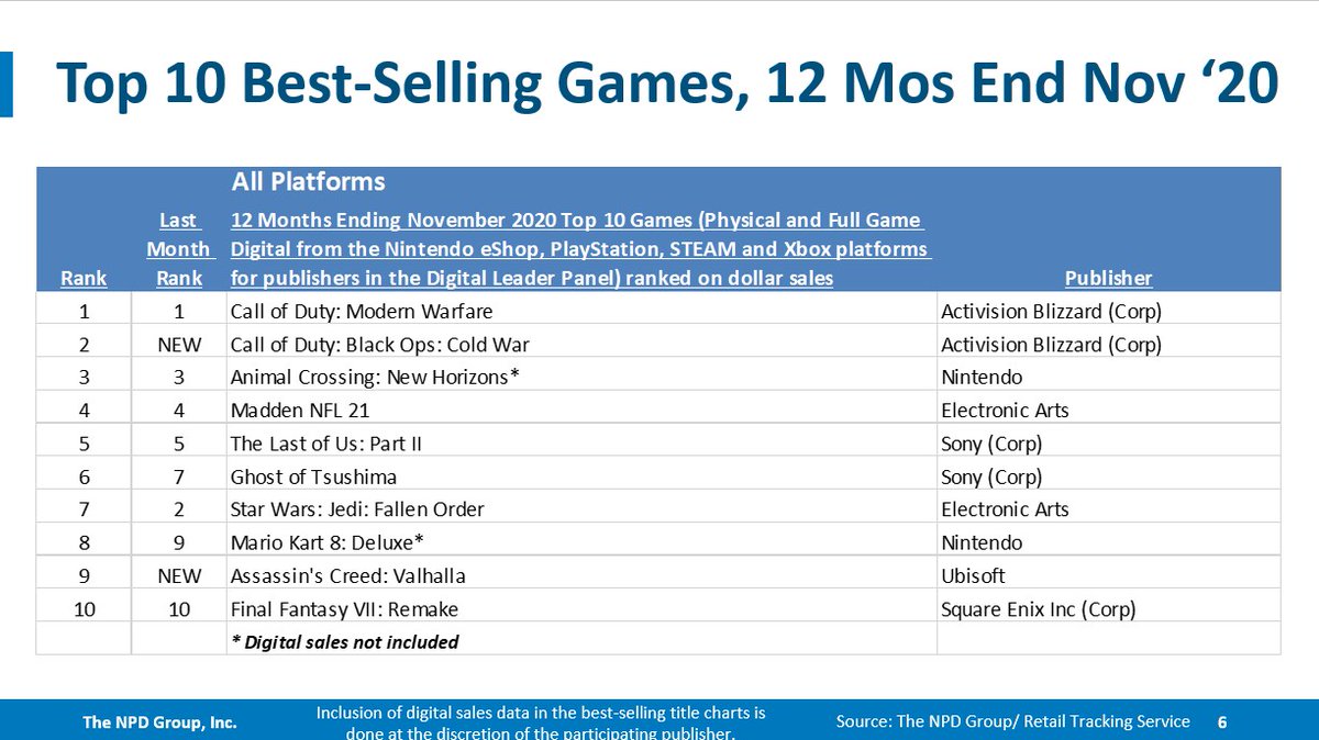 November 2020 NPD: Best-selling games on Switch, year-to-date, last 12 months