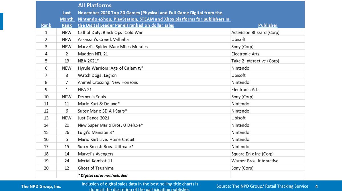 November 2020 NPD: top 20 best-selling games in the U.S.