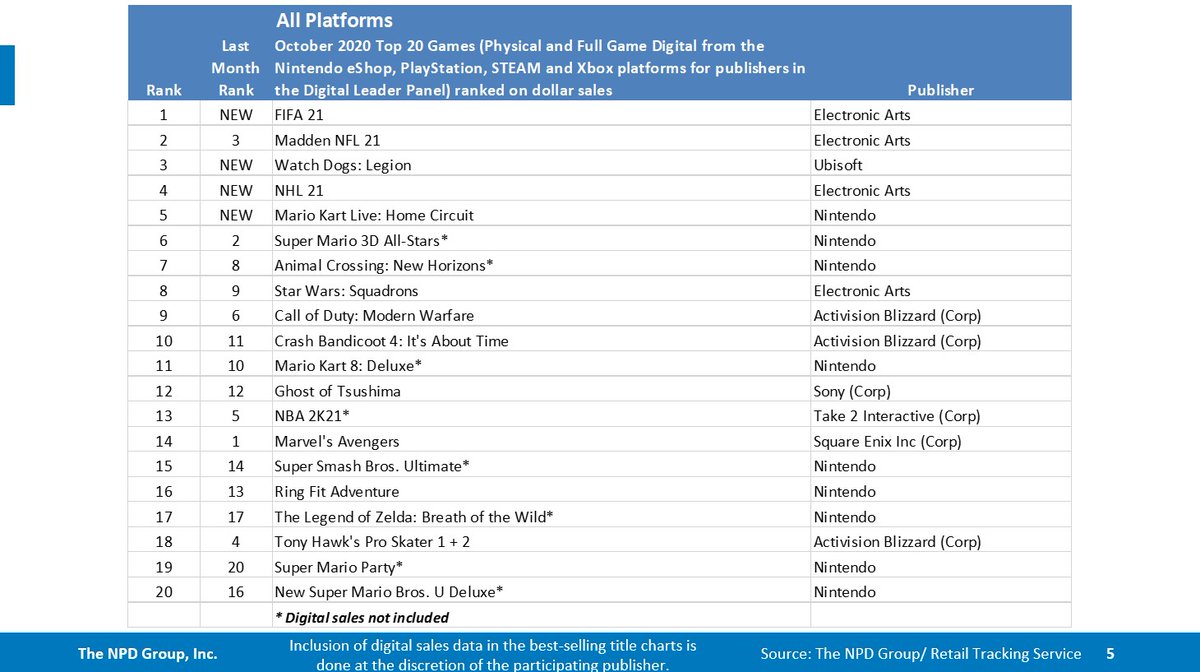 October 2020 NPD: top 20 best-selling games in the U.S.