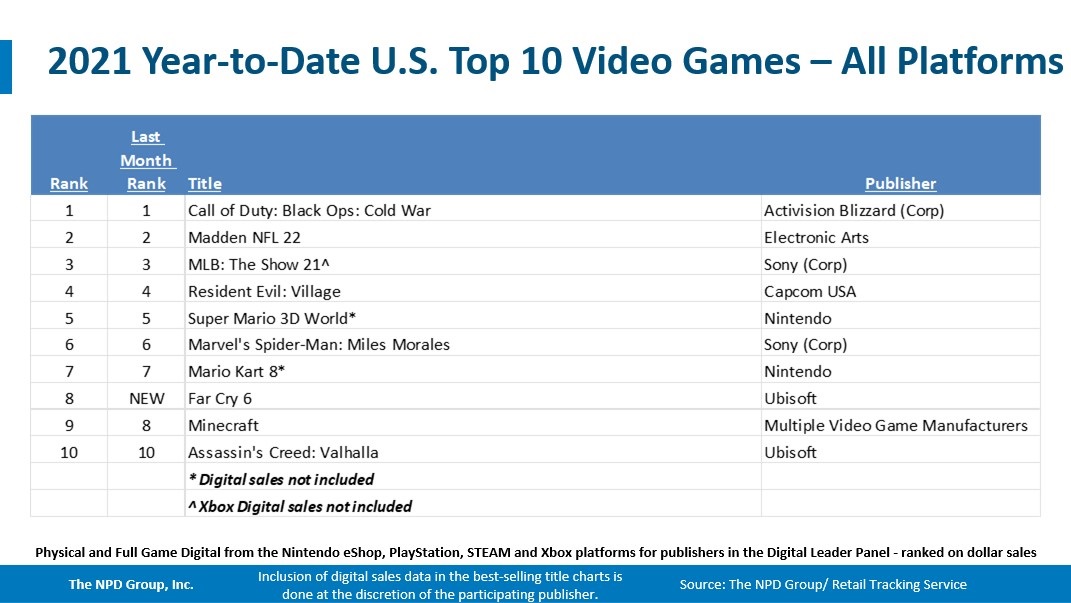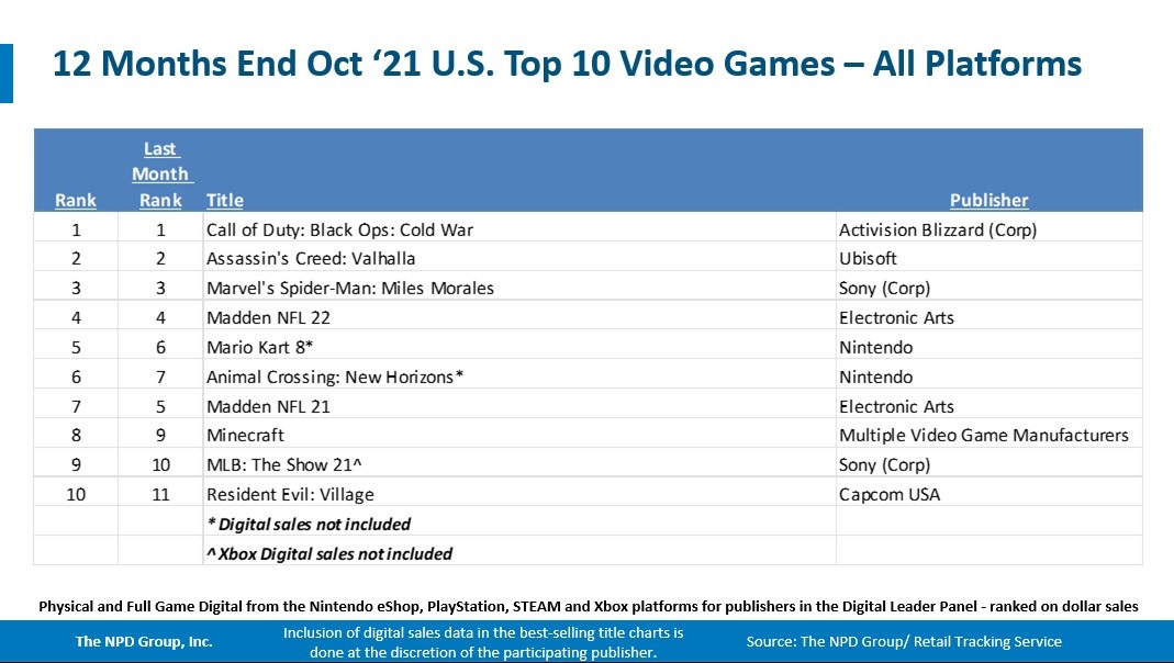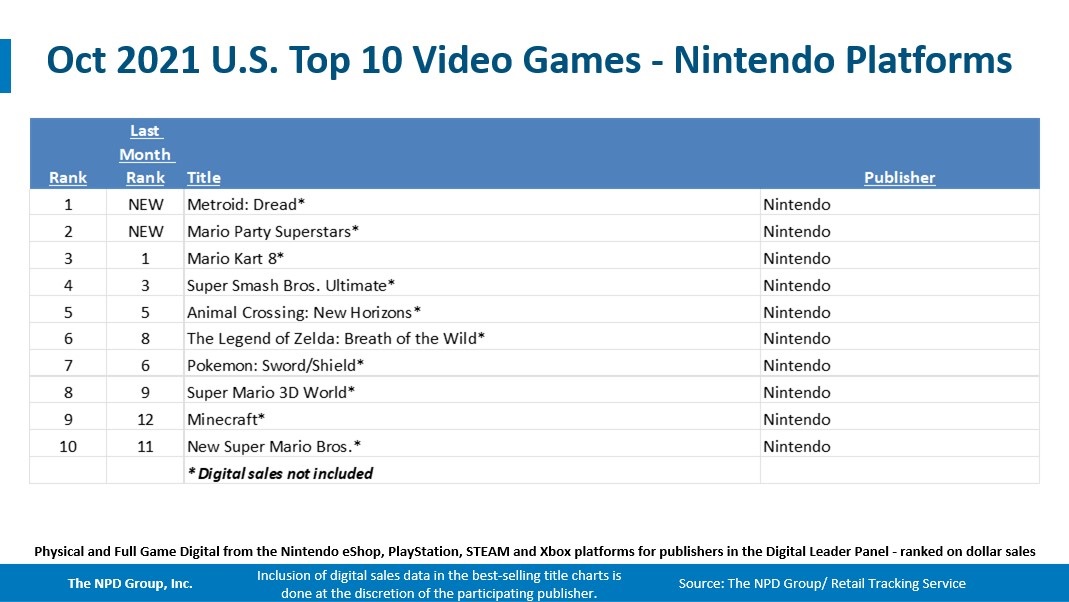 October 2021 NPD: Best-selling games on Switch, year-to-date, last 12 months