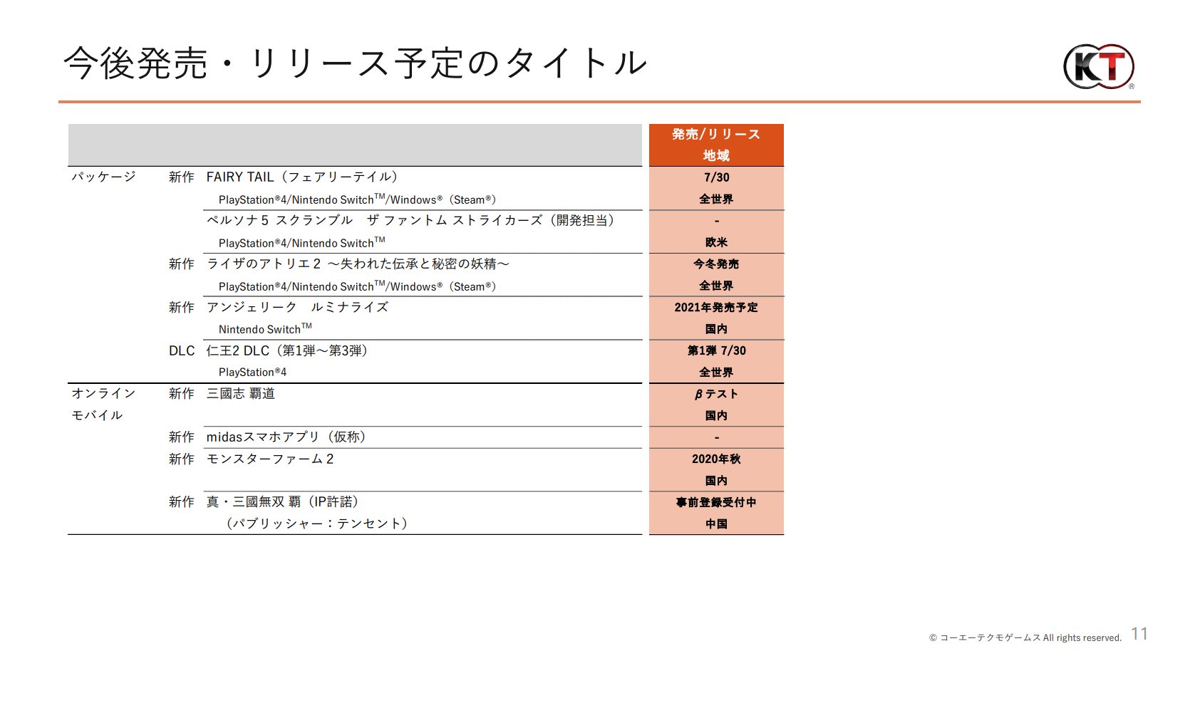 One of the presentation slides included in the report is dedicated to Koei Tecmo’s future titles. For the “packaged games” category, Persona 5 Scramble: The Phantom Strikers is included, and the planned release region is listed as “the west”.