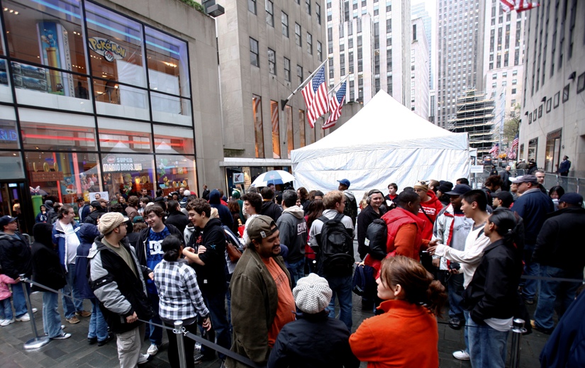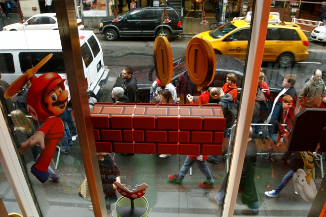 Eager fans of all ages flock to the Nintendo World store in New York on Nov. 14, 2009, to be among the first to experience the New Super Mario Bros. Wii game, the highly anticipated title that lets up to four people play together for the first time in the beloved franchise’s history. New Super Mario Bros. Wii launches on Nov. 15, 2009, for the Wii console.