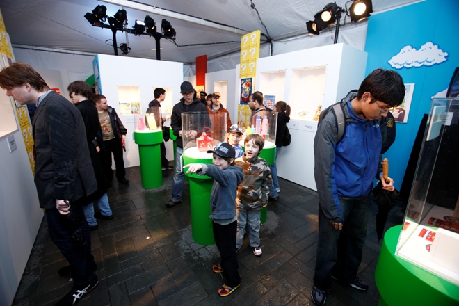 Consumers view Super Mario Bros. memorabilia in a one of a kind museum hosted by Nintendo at an event celebrating the launch of the New Super Mario Bros. Wii game at the Nintendo World store in New York on Nov. 14, 2009. New Super Mario Bros. Wii, the highly anticipated next chapter of the beloved Super Mario Bros. series, launches on Nov. 15, 2009.