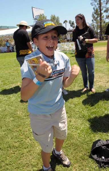 In this photo released by Nintendo, Eric S., 8, of Miami, Florida shows his excitement at winning the Fossil Fighters video game tournament at the La Brea Tar Pits Thursday, August 6, 2009 in Los Angeles. Fossil Fighters for the Nintendo DS and Nintendo DSi portable video game systems launches on August 10, 2009. (Photo by Nintendo, Bob Riha, Jr.)