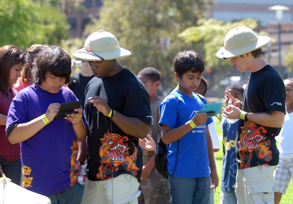 Kit Ellis, Nintendo of America’s Manager of Public Relations, guides young video game fans at assembling ‘Vivosaur’ puzzle pieces, which represent dinosaur-like fossils from the new Fossil Fighters game for Nintendo DS and Nintendo DSi portable game systems, at the La Brea Tar Pits, Thursday, Aug. 6, 2009 in Los Angeles. Fossil Fighters launches on August 10, 2009. (Photo by Nintendo, Bob Riha, Jr.)
