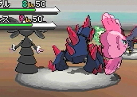 And then there’s the other 20-odd Pokémon that have been revealed (some unofficially) at this point in time. There’s the usual mix of animal-based Pokémon —everything from apes to zebras— as well as a few odd ideas like a ghostly coffin and a pair of gears. The only two Pokémon that are known to be version exclusives at this point are Rankurusu —a weird green Psychic blob…thing that will only appear in the White version— and Gochiruzeru —another Psychic type Pokémon that appears to be wearing gothic lolita style clothes (yes, really). Technically, Gochiruzeru is the “celestial body” Pokémon, but I’ll always view it as the gothic lolita Pokemon. Also, it’ll only be available in Pokémon Black. No evolutions of existing Pokémon have been officially revealed, but new screenshots (which ruined my finished article) show a new fish Pokémon —Mamambo— that looks suspiciously like an evolution for Luvdisc. Now Luvdisc might not be as worthless!