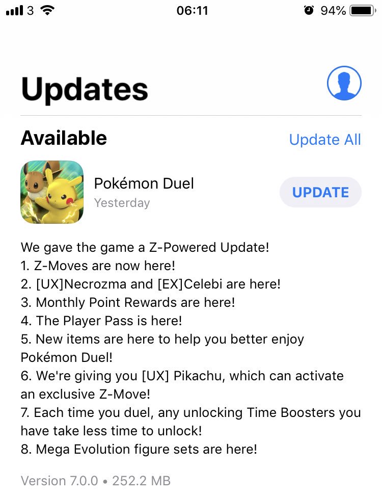 A new patch is now available for Pokemon Duel that brings the game up to Version 7.0.0 and introduces a “Z-Powered” update.