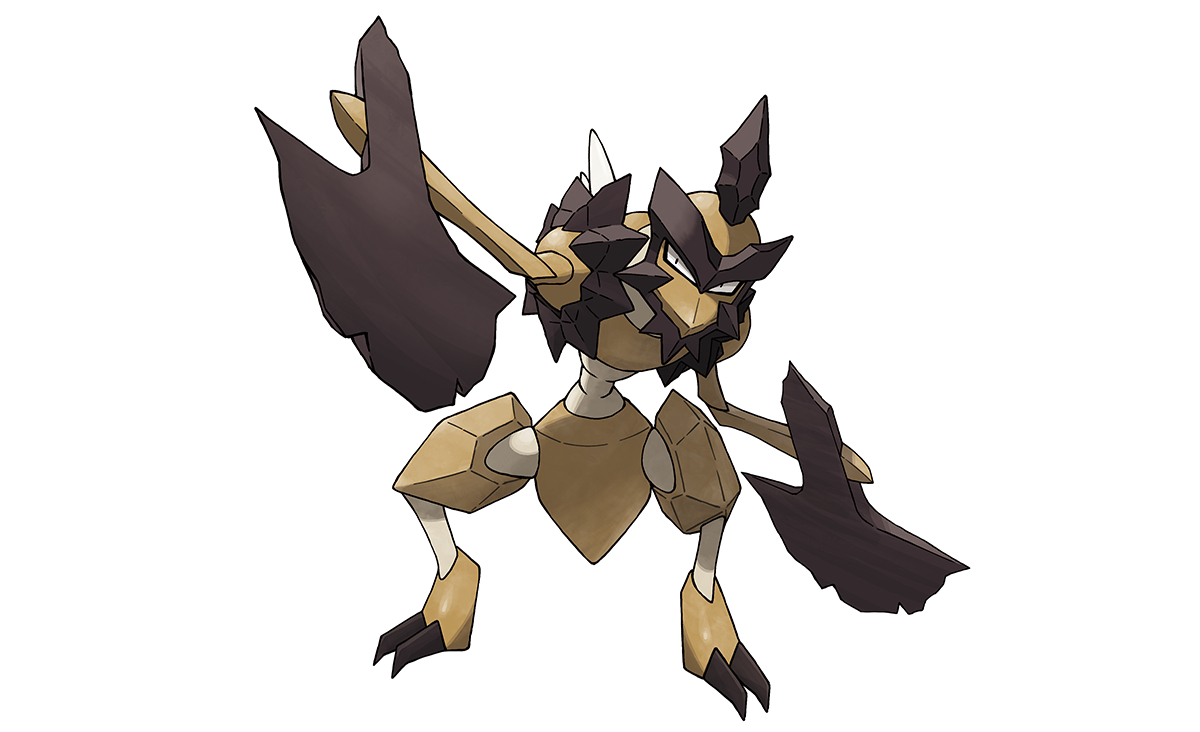 Kleavor is a Bug/Rock Pokemon, coming in at 5’11” and weighing 196.2 pounds. It’s able to evolve from Scyther due to special minerals located in Hisui. Parts of the creature’s body have hardened into stone, and these stone parts can chip during battle.