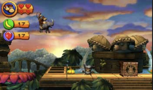 Returns’ cooperative two-player mode remains in Returns 3D, allowing players to team up on levels as Donkey and Diddy Kong through the use of two 3DS systems. However, much to players’ dismay, two game cards are required for this.