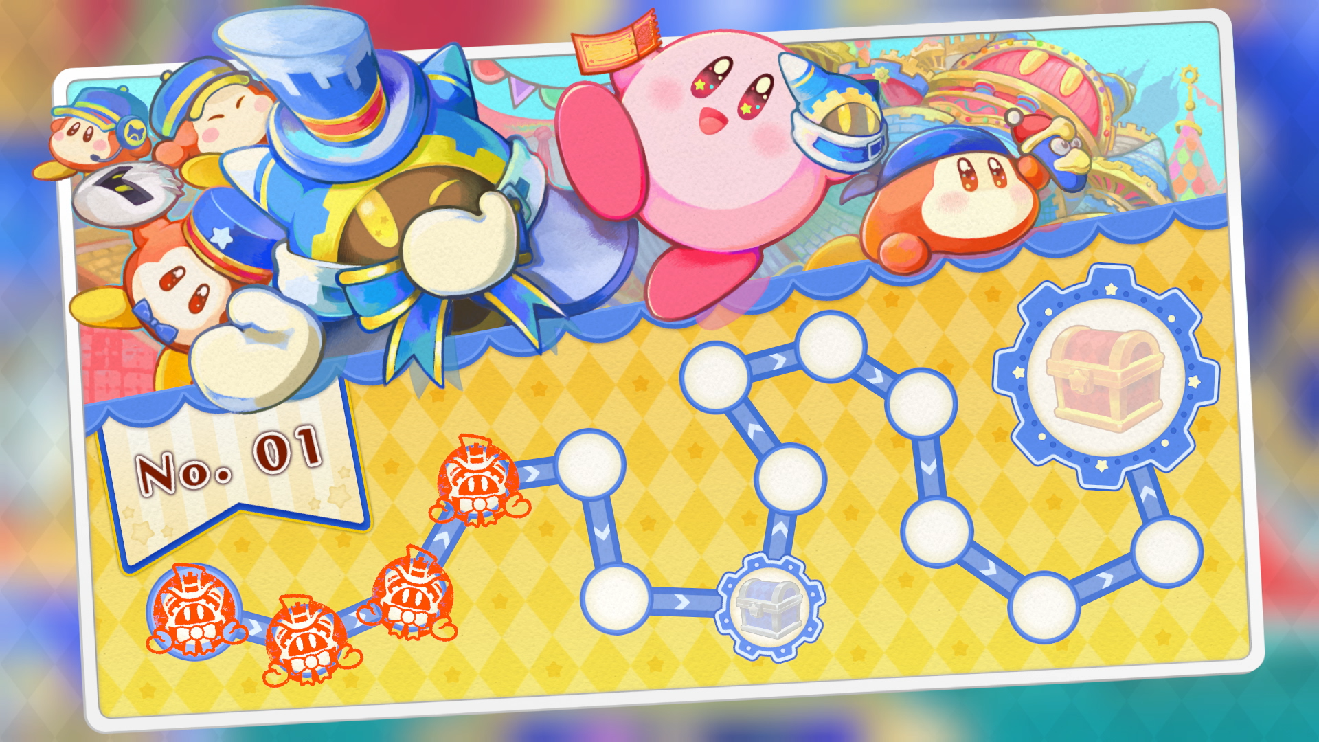 - The Stamp Card provides structured progression through the minigames. Through this Stamp Card you will receive missions that lead to unlockable souvenirs like Masks of Kirby characters you can wear in the main campaign.