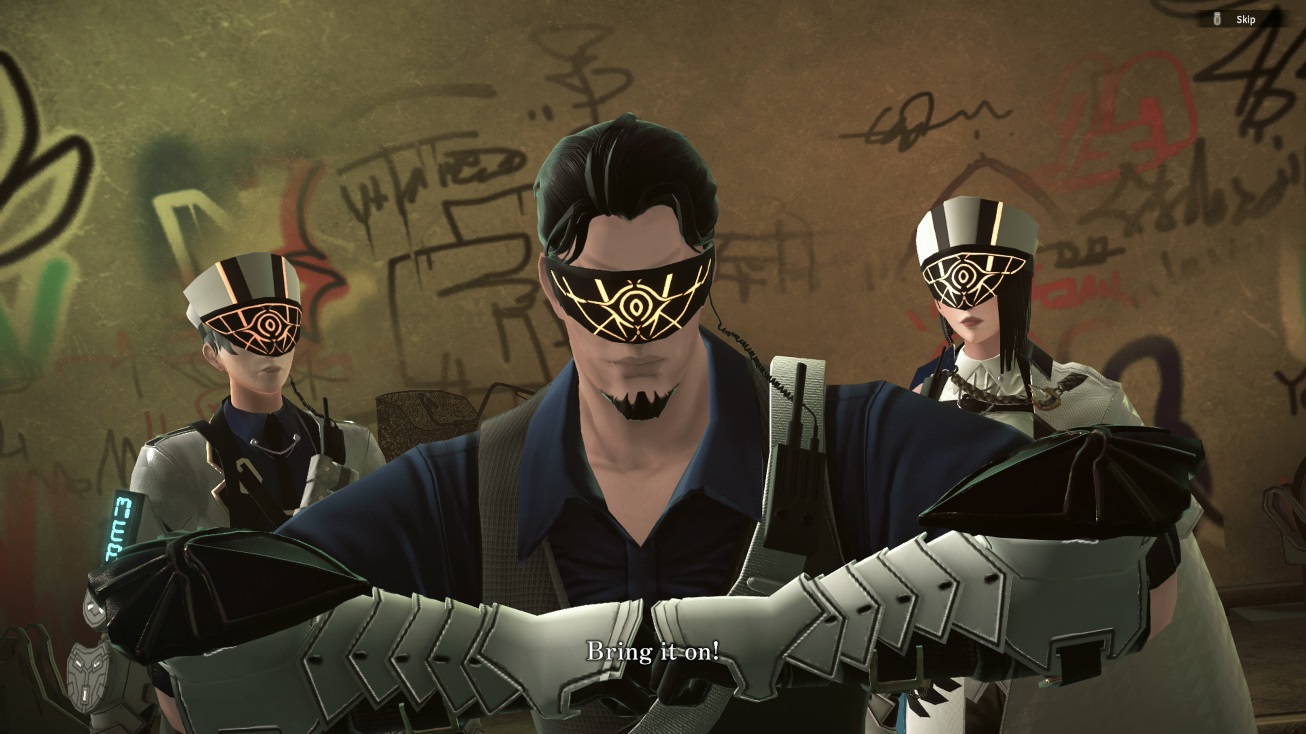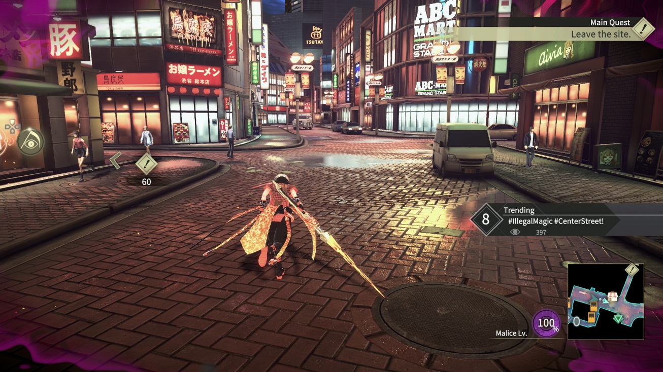 Marin and Sari can traverse Shibuya in two ways – with their powers unmasked in Liberation Mode, or hoods up and inconspicuous in Suppression Mode. When exploring, you’ll use Suppression Mode to talk to townspeople, take on quests, shop, or simply check out where you are and what the area has to offer. Suppression Mode is required for most characters to chat with NPC’s. Since MEA members are part of a legit police force, Sari can chat in either mode without alarming the people of Shibuya. This is handy for gathering intel quickly and jumping into combat immediately without upsetting the passersby.