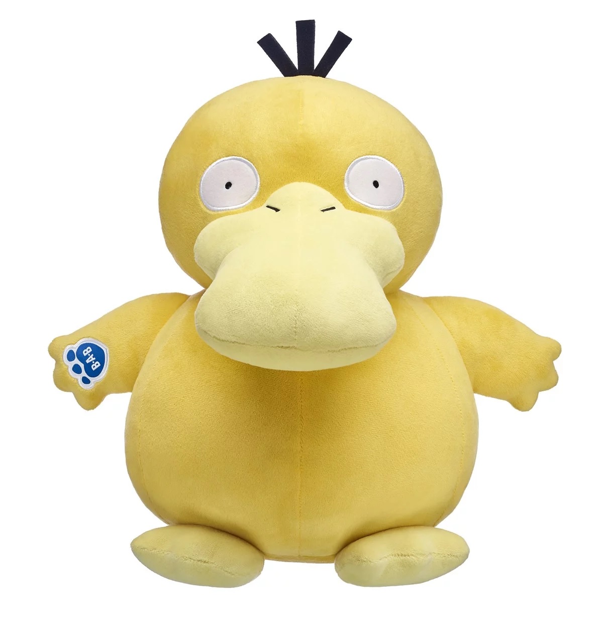 – Online Exclusive Pokémon Psyduck Bundle (includes plush, a Raincoat and matching Rainhat for Psyduck, a Luxury Ball Hoodie, Psyduck 6-in-1 Sound Chip, and a Build-A-Bear Workshop Exclusive Psyduck Pokémon Trading Card Game (TCG) card): $65, plus tax