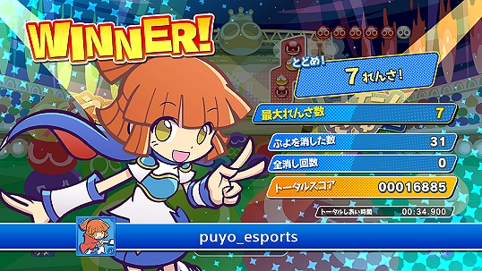 “Number of Puyos Erased,” “Total Number of Times Erased,” “Largest Chain,” “Total Score,” “Total Match Time,” and “Number of Fevers” have been added to the match results screen.