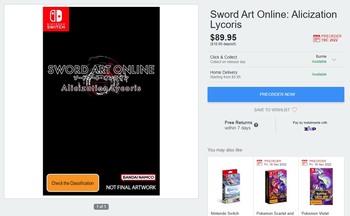EB Games Australia issued a marketing email to consumers earlier today regarding news shared from this week’s Nintendo Direct Mini: Partner Showcase. However, Sword Art Online: Alicization Lycoris was included despite not being announced for the platform.