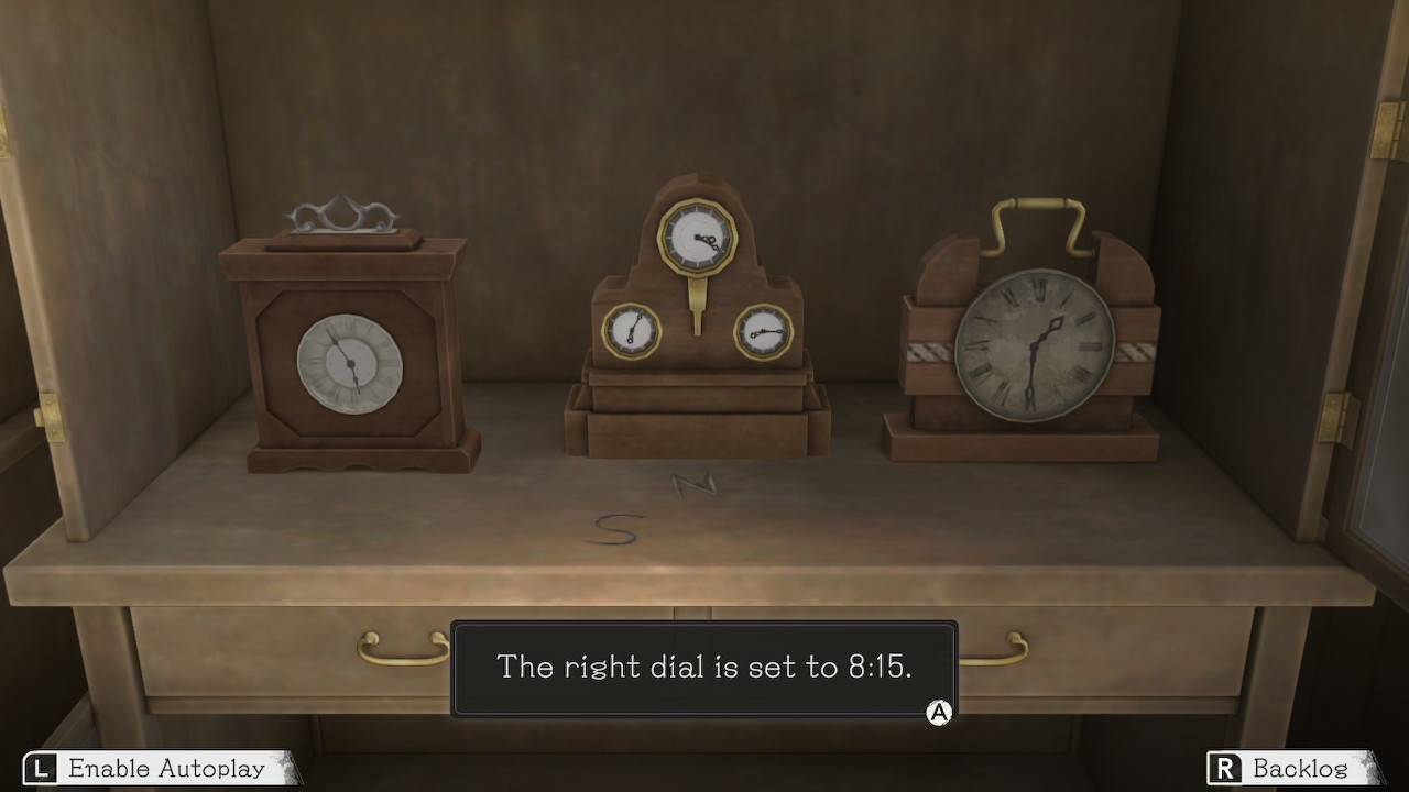 Generally speaking, Another Code: Recollection’s gameplay is dictated solely by its narrative. While the game certainly has puzzles, I wouldn’t call it a “puzzle game” as they feel like a relatively small portion of the gameplay, and only generally come up when there’s a narrative reason for them to be there. The Two Memories arc feels more puzzle-heavy than the Journey Into Lost Memories arc, mostly because the abandoned mansion that Ashley finds herself contains many locked doors adorned with vague symbolism that ties into the history of the place. To find more keys to progress deeper into the crumbling residence, Ashley will solve some one-off puzzles; one of them, for example, involves figuring out which combination of notes to play on a piano to open its secret compartment. Another puzzle temporarily shifts the game into a first-person perspective, as Ashley wanders through a dark library, needing to methodically place a limited number of candles to illuminate her path forward. While some of the puzzles have some clever ideas, they’re almost mindlessly simple to complete, and that’s without any reliance on the in-game hint system. It seems like many of the puzzles that relied on the original DS hardware have been stripped out entirely from this remake, and this could very well be part of the reason why the ones that remain feel a little average. But as it stands, as long as you’re paying attention to Ashley’s dialogue and thoughts, you’ll likely have no trouble completing them unless this is your first experience with this type of game.
