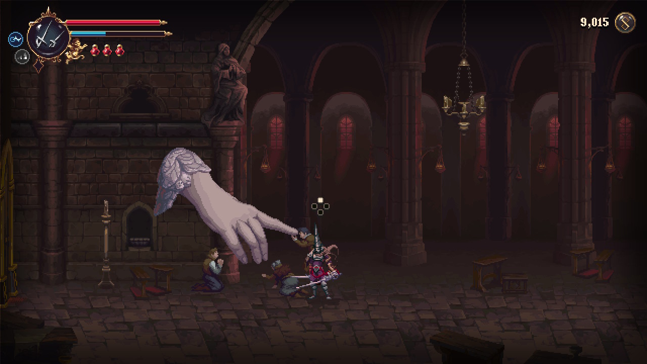 There are still Soulslike gameplay mechanics present in Blasphemous II, which are a little more punishing than is standard for the genre: each time you die you will build up Guilt, which locks away part of your Fervour bar, the game’s magic meter. Returning to where you died will restore this, but only up to a point: if you die too many times, you’ll need to either defeat a boss enemy or pay one of the game’s NPCs in the city to restore it. The fast travel portals are conveniently located next to a Prie Dieu save point most of the time, meaning this is more of a minor inconvenience than it is an excessive source of frustration, as it is likely that most of your deaths will be around bosses (that was where I found myself dying most often at least!) but it is one small way in which the game is notably more punishing than its peers.