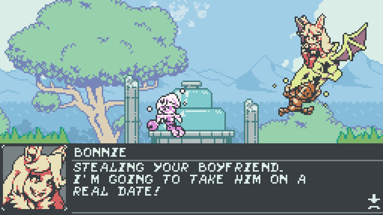 Side-scrolling platformers are a classic genre – in fact, for many players they’re the first kind of game ever picked up. As a child in the 90s, my introduction to video games was a classic NES Mario title, and upon booting up Curse Crackers: For Whom the Belle Toils, I had a wave of nostalgia wash over me, reminding me of what games looked like when I was small. The intro sets up the back story just like what I was used to, and seeing character portraits and pixelated text felt like a blast from the past. The chiptune soundtrack made me crack a smile immediately. Diving a little deeper, I wanted to know if Curse Crackers was more than just an homage to bygone times, or if it could stand by games of the modern age.