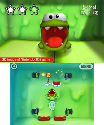 While there’s surely no surrogate to be had for a proper trim and cut, with the recent release of Cut the Rope from hitherto unknown Russian developer ZeptoLab, you can now come close to replicating the same pleasurable feeling I experienced at the hands of the barber in the comfort of your home with your 3DS stylus. At a price of $9.99 (compared to the lousy $17 run-around deal I got for a pretty standard bowl shape), Cut the Rope checks off every box a figurative contemporary downloadable game assimilates, and through sheer content and professionalism, releases as one of the most polished and notable puzzle titles to be consumed on the 3DS eShop. Om Nom.