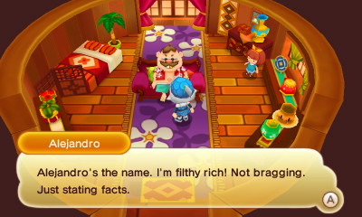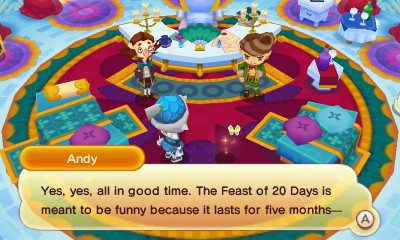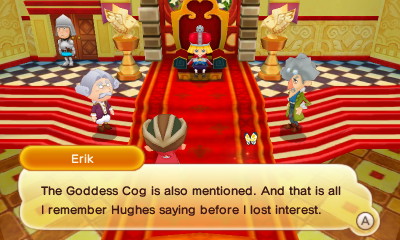 The other major success in Fantasy Life comes in the form of its writing, which presses on the strange and quirky in all of the right places. It’s laugh-out-loud funny often enough to be notable (one location in the game is called “Port Puetro”, which literally translates from Spanish to “Port Port”), but it’s also impressive because every character has a distinct voice– their own ways of being funny, or of playing off the other characters. The King– Erik, we call him– is often blunt and unperceptive, while his daughter Laura is stubborn and adventurous. The kingdom’s researcher Hughes is efficient and arrogant, but ultimately goodnatured, while your Butterfly companion is full of life and mystery. The only character that has no personality is the player character who says nary a word throughout the whole game, often to staggeringly hilarious effect. They don’t feel at all like real people measured against the rules and regulations of boring old “real life”, but I’ll be damned if these folks aren’t extremely likeable.