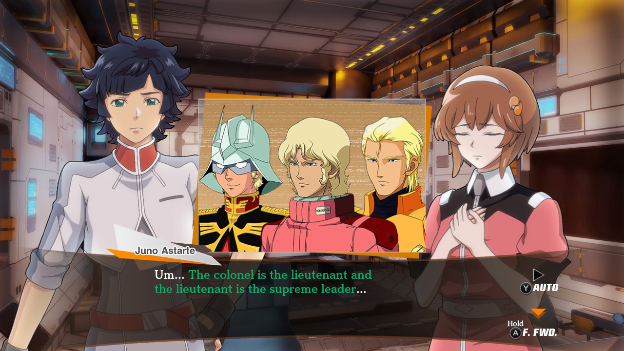 I found the story to be convoluted and often difficult to follow, as it jumps across several Gundam timelines in no particular order, and there is a lot to keep track of. But a nice surprise was the inclusion of briefing scenes, which are unlocked as you progress the story and were clearly designed to address this confusion. These scenes provide a brief overview of key terms, events, and characters, as well as putting it into the context of the main story by telling you what has gone wrong and what should be happening. The game will tell you when they are unlocked but will leave it to you to decide whether or not you wish to view them. This more personalized approach to storytelling is something I really appreciated, as someone who hasn’t seen every Gundam anime series and at times wanted to play through more missions before sitting through another long story scene, but still wanted to understand what was going on.