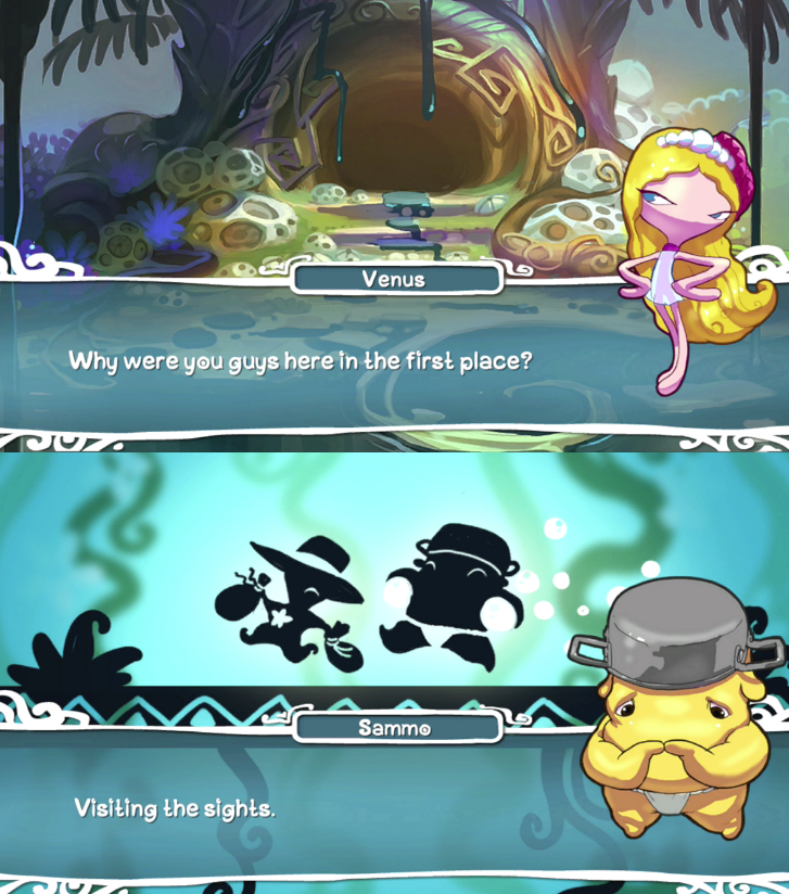 Still, the backbones of the game– notably the gameplay– are sound. Even the story, although simple and by all counts generic, manages to build just enough of a background for each individual character (all of whom play into stereotypes, which makes them easy to remember and attach to, though mildly) that you feel connected to the place and events going on. It’s not drastic– we’re not talking about Homer’s The Odyssey here– but it’s nice to see simple characters playing out a simple story as a way to string together really solid gameplay and a few chuckle-worthy lines of dialogue. The localization (yes, the game began in French!) is commendable.