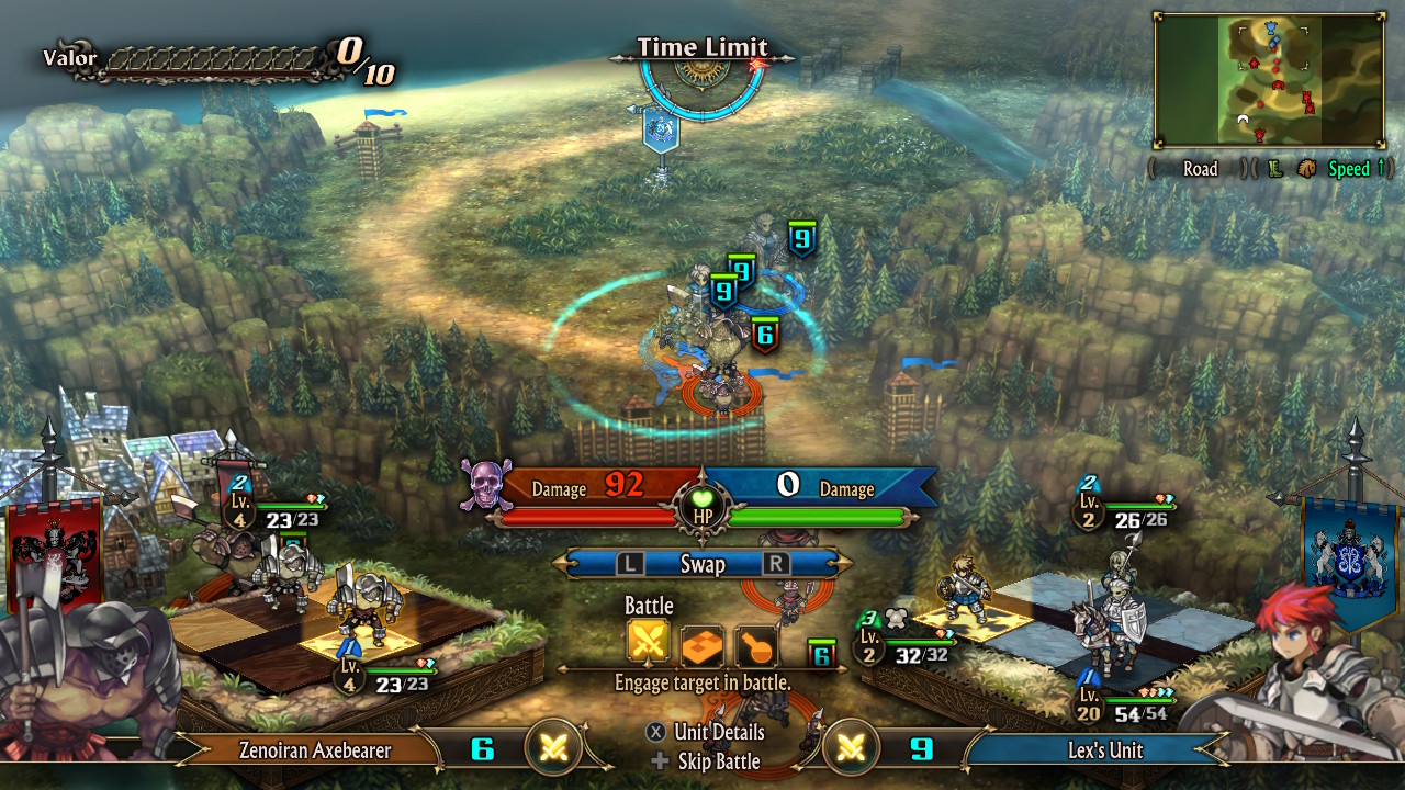Each character also has Tactics, which lets you determine what skills they’ll use in battle, and when. The default settings are more than enough to get by on lower difficulties, and the AI is fairly competent at adjusting as characters gain levels to make the best use of the Active Skills they’ll learn, but properly managing this becomes essential on higher difficulties to survival. You can set characters to target enemies with more or less health with specific skills first, or prioritize healing. Characters, of course, have their own individual levels and stats, as well as Passive Skills which provide various boosts, and Valor Skills that you can activate yourself in battle as you amass Valor points. When you’re managing multiple Units and classes, it’s easy to spend hours on micro-managing your party, and this only becomes more complex and captivating as you progress through the game and more options become available to you.