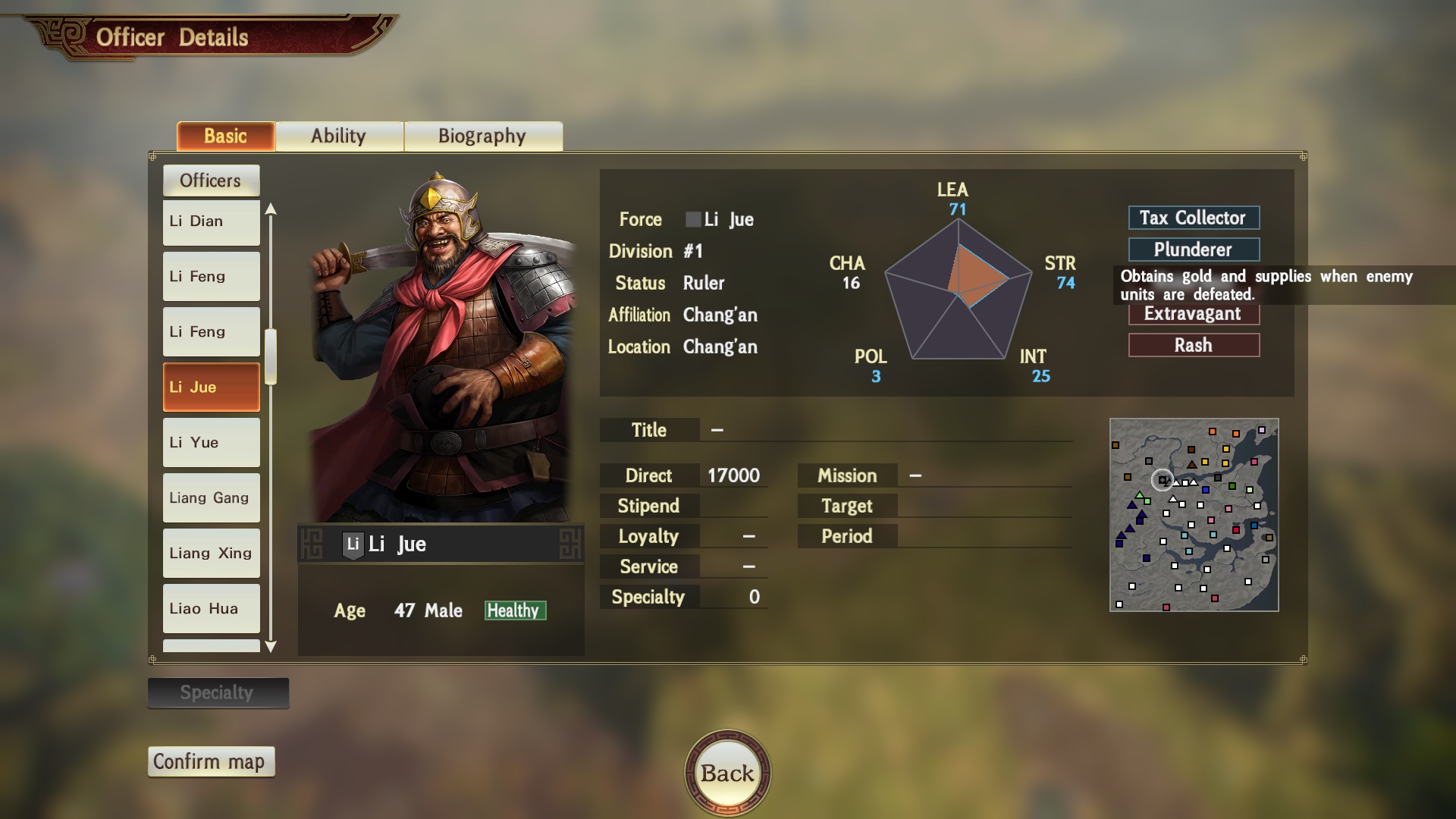 In addition, Romance of the Three Kingdoms XIV: Diplomacy and Strategy Expansion Pack features all-new Officer Characteristics to help make each officer play and feel more unique. Abilities highlighted include: “Plunderer”, enabling an officer to obtain gold and supplies when enemy units are defeated; “Adamant”, which will greatly decrease attack damage from buildings; “Guard” ensures that prisoners affiliated with a base where the “Guard” officer is governor will not escape; while “Ministrant” officers are more likely to added to a coordinated attack, regardless of relationships.