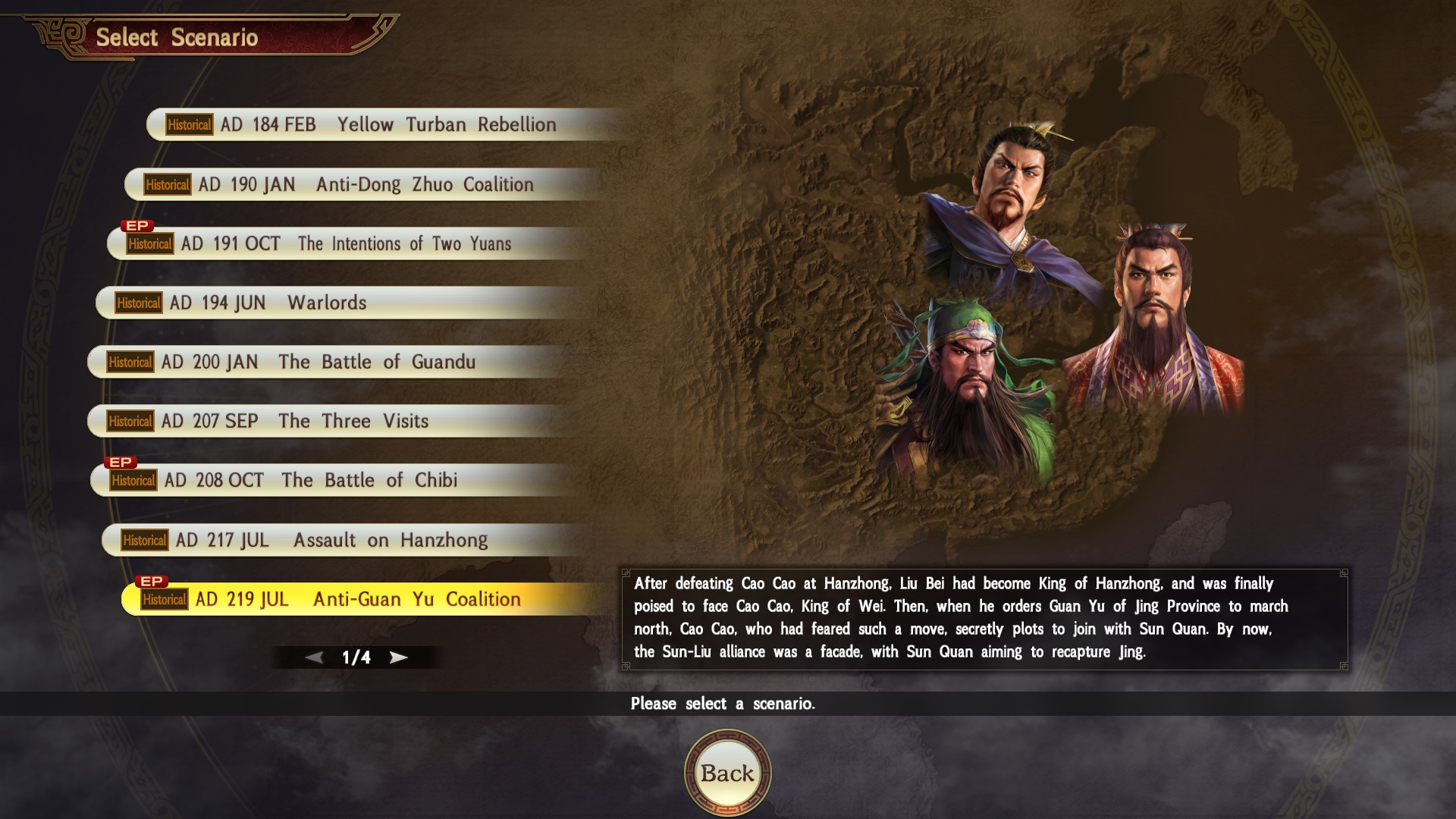 Some of The Three Kingdoms most epic moments are being added to the historic simulation franchise thanks to four new Scenarios, enabling gamers to play as unique warlords who were active during several stages of the time period, and depending on the forces chosen, players will be presented with completely different paths in their attempts to unify China. The four new Scenarios include “The Intentions of Two Yuans” (October 191), a story that depicts how the ambition of warlords clash after the Anti-Dong Zhuo Coalition collapses; “The Battle of Chibi” (October 208), the biggest turning point for Romance of the Three Kingdoms; the “Anti-Guan Yu Coalition” (July 219), where Wei and Wu join forces to prevent Guan Yu from advancing north; and “The Conquest of Liaodong” (January 238), portraying the subjugation of Gongsun Yuan, the King of Yan, by Sima Yi. And while the game portrays classic events like Sun Jian’s sudden death and Zhou Yu’s scheme to sow dissension, players will also be able to create their own striking moments with the new Event Editor. Here, players can combine backgrounds, speakers, BGM, messages, and officer images into a historic recreation all their own.