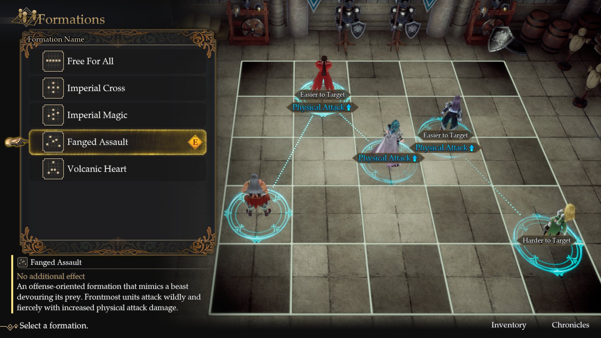 - Fanged Assault: Can be learned when a Mercenary is appointed Emperor. The foremost unit has increased physical attack power, but they also become easier for enemies to target.