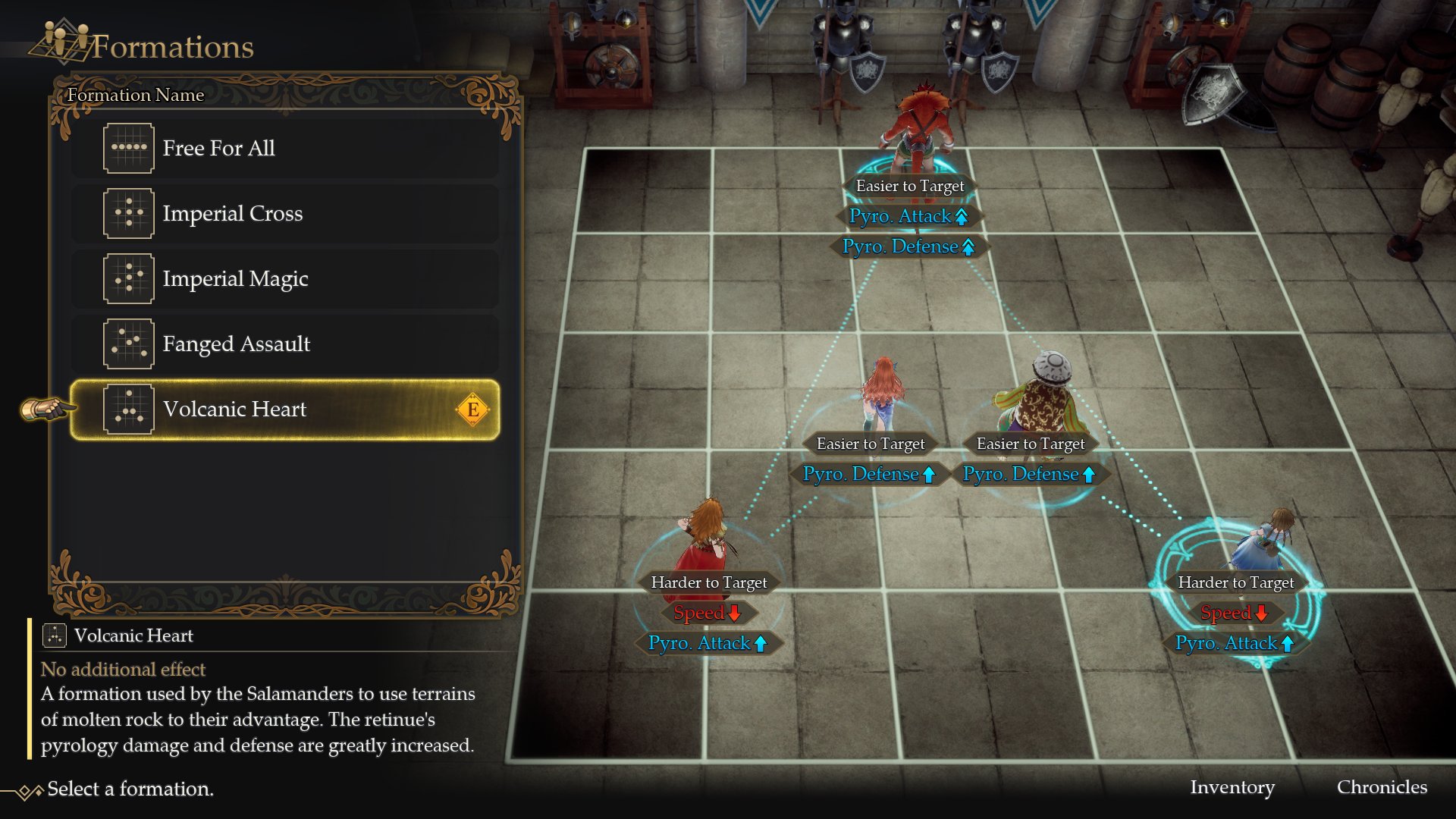 - Volcanic Heart: Can be learned when a Salamander is appointed Emperor. All units get a significant boost in both offensive power with and magic defence against pyrology spells.