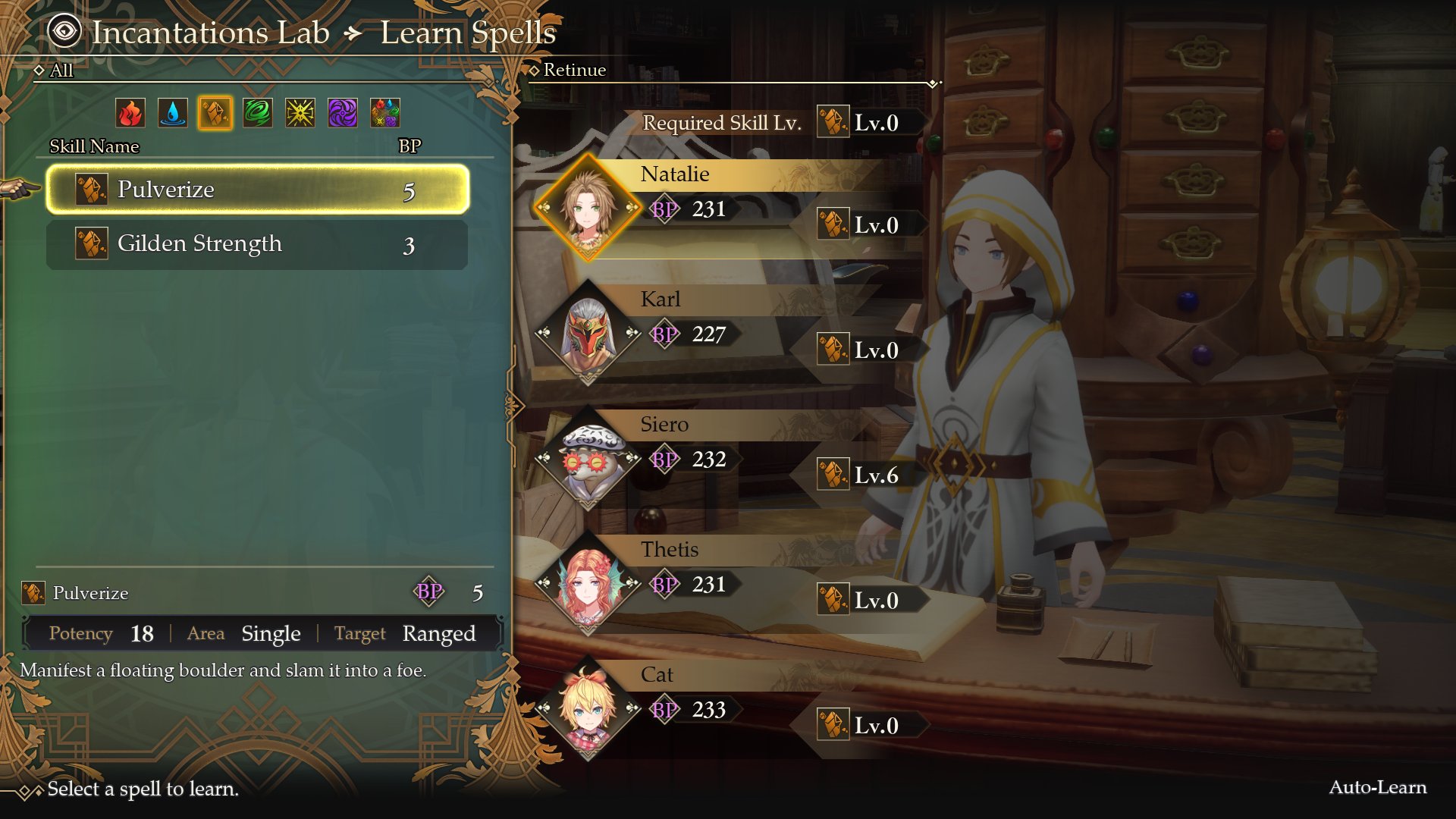 - Pulverize: Terrology spell. Manifest a floating boulder and slam it into a foe.