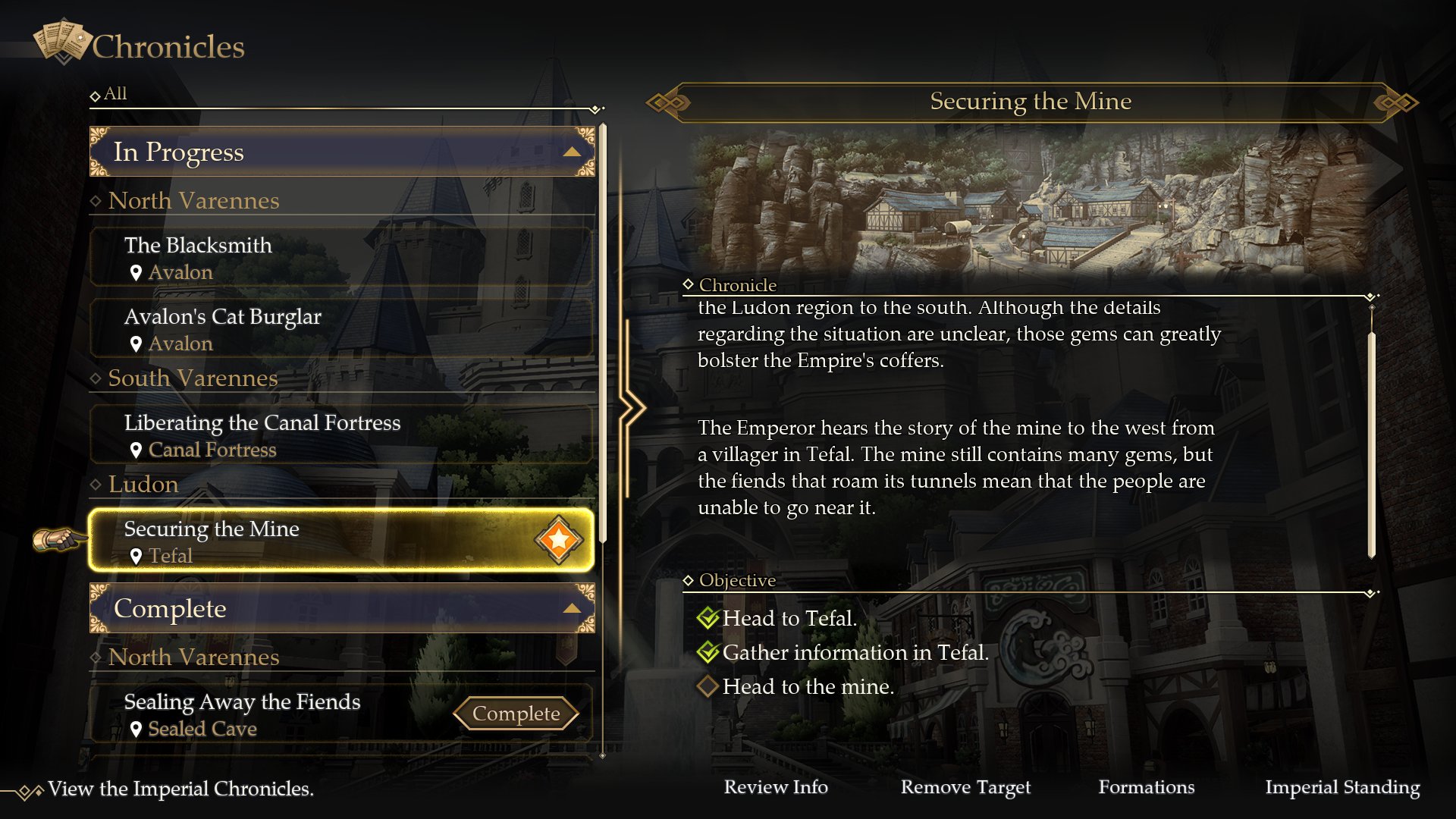 The Imperial Chronicles allow players to see a record of all that they have done in the story thus far, as well