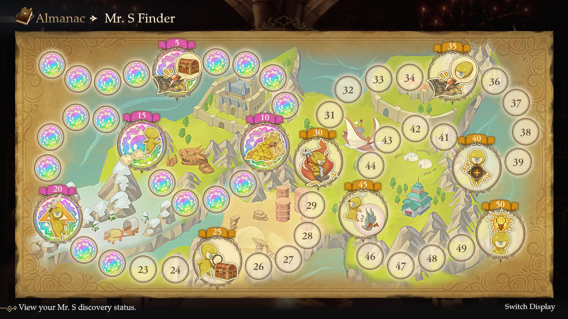 Each time Mr. S is is found, he rewards the player with a sticker. Collecting stickers unlocks all sorts of benefits, such as increasing the amount of revenue gained after each victorious encounter, decreasing the amount of time it takes to build new facilities, or revealing the location of undiscovered treasure chests.