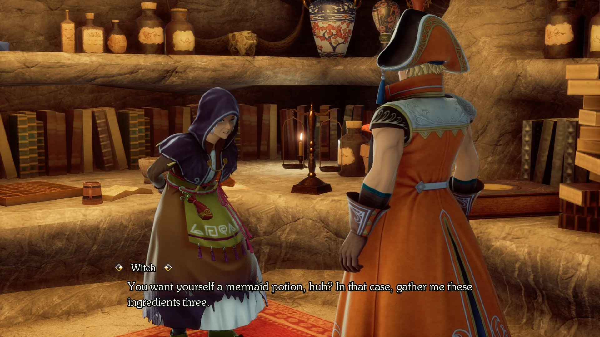 - Seeking help from the witch: If the player seeks out the witch, they will need to go on a quest which requires getting help from a variety of different races and then handing over the necessary materials. Once done, the witch will reward the player with the potion. Using the mermaid potion allows the player to reach the sunken shipwreck. Garon, the ghostly pirate who summoned the storm, waits for the retinue in its depths.
