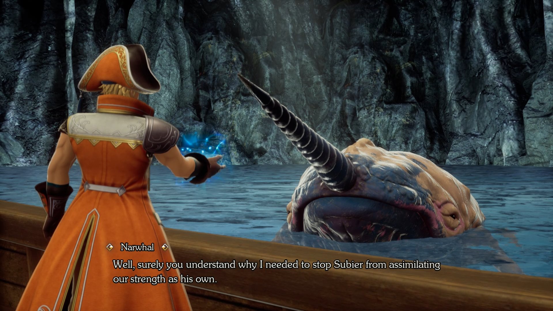 - Seeking help from the fishmen: If the player makes peace with Narwhal after she destroyed one of the Empire’s bridges, a messenger from the mermaids will give the player the mermaid potion. Using the mermaid potion allows the player to reach the sunken shipwreck. Garon, the ghostly pirate who summoned the storm, waits for the retinue in its depths.