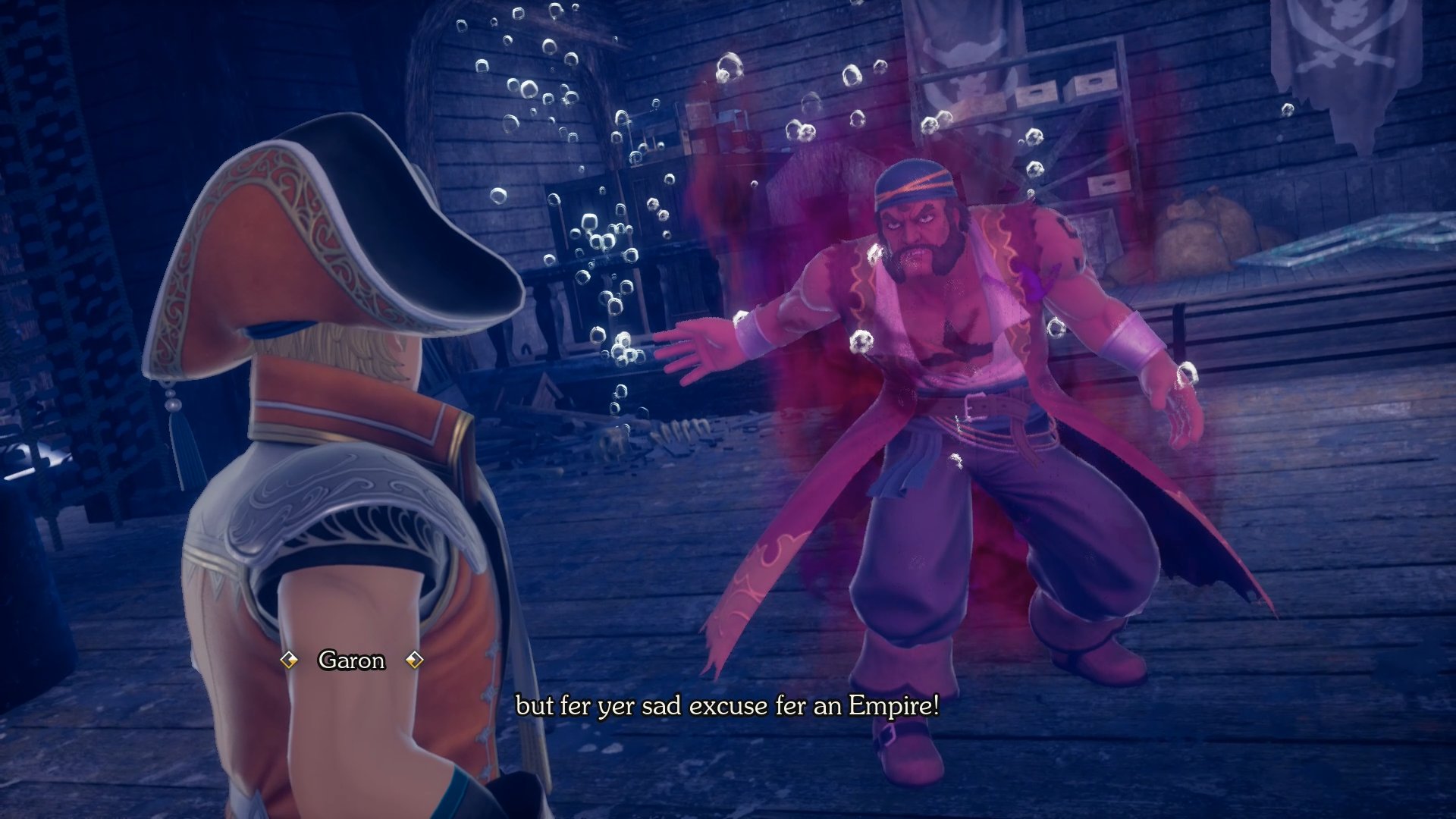 One day, the small port town of Toba in South Longit is struck by a fierce storm that shows no sign of letting up. The storm has left the locals unable to fish. A diver from the town informs the Emperor that a pirate by the name of Garon was shipwrecked somewhere in the middle of the South Longit Sea after being attacked by Narwhal, Ruler of the Seas. Garon still haunts the region, and his ghost is suspected to be the cause of the storm.