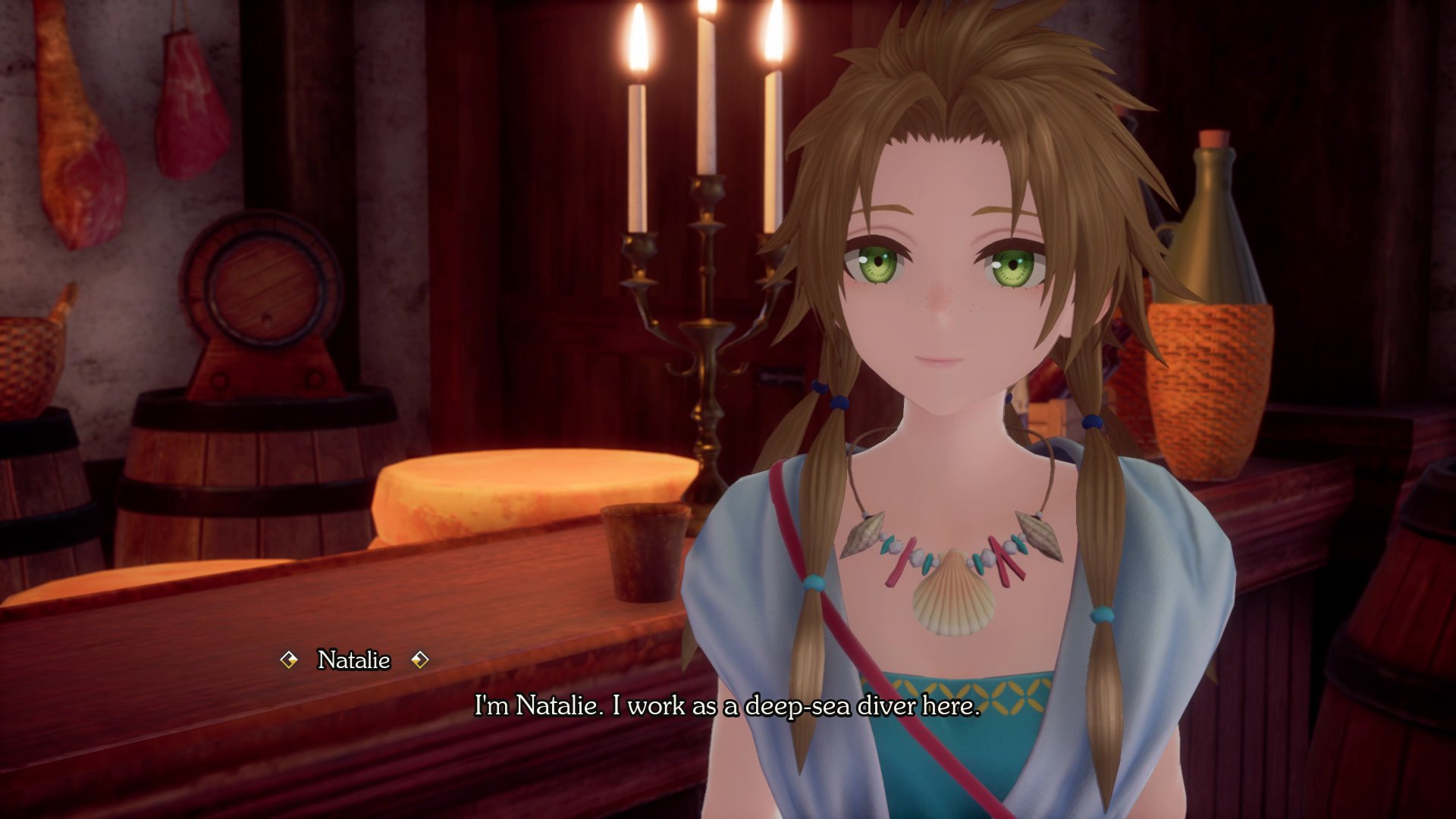 - Natalie – Diver: Natalie is a fisherwoman from Toba on the Western coast of the South Longit Sea. Her work helps to support the economy of her hometown.