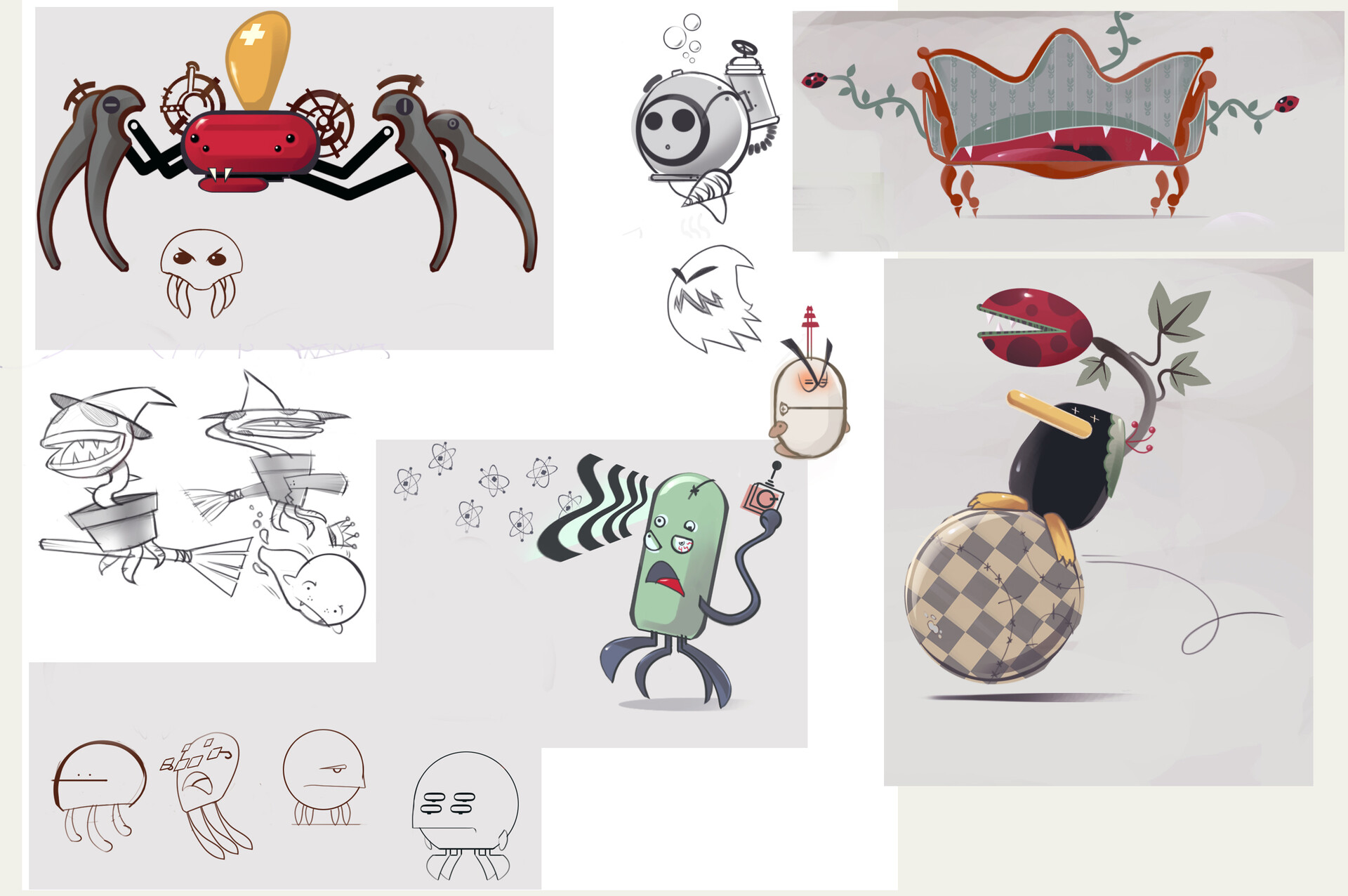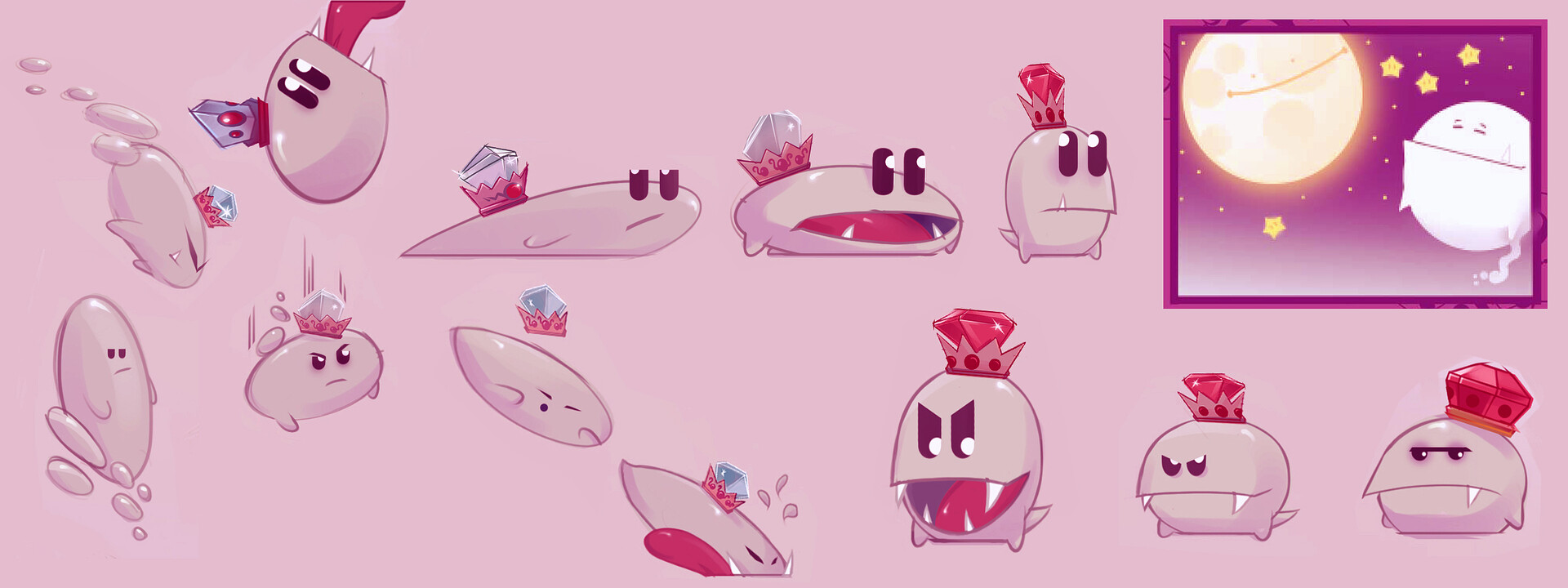 Unfortunately, much less is known about the Boo project. Art here was designed between 2006 and 2007. Since one of the sketches are titled “tiny stuff for tiny handheld resolutions,” perhaps it was considered for the DS. The available art also shows sketches titled “possession powers” and “Broomies”, plus a sketch of a potential world map.