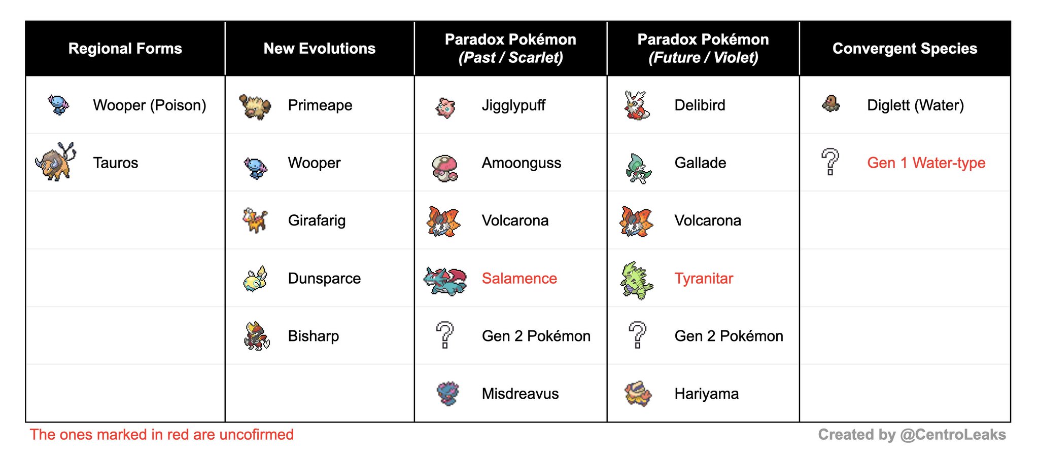 Pokemon Scarlet and Pokemon Violet leaked Regional Forms, Cross-Gen Evolutions, Paradox Pokémon, and Convergent Species