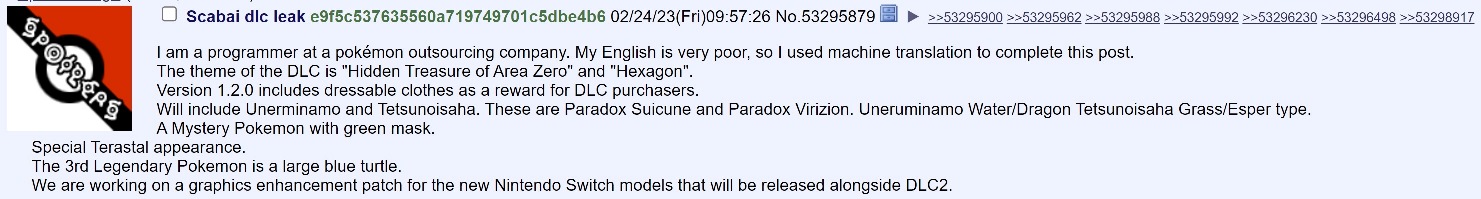 One possibility is that the 4chan user had knowledge about the DLC, but was throwing in the tidbit about a new Switch just for the sake of it. There’s unfortunately no way or verifying things either way currently. However, since so much about the Scarlet and Pokemon Violet DLC ended up being correct, we figured the post was at least worth a mention. It goes without saying, but every rumor should be taken with a grain of salt.